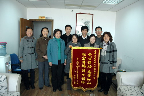 2011年3月24日,我校机电工程学院2009级丁轶同学的父母亲向学校赠送了一面书有“爱心捐助 恩重如山 惟宏隆德 师生情深”的锦旗,并送来一封感谢信,表达了对全校师生的感激之情。在去年“11.15”火灾中,丁轶一家受灾较重,学校及时向丁轶同学伸出援助之手。党委书记徐佩莉代表学校在第一时间向丁轶同学送去慰问,找他谈心,鼓励他战胜困难,勇敢面对一切。校学生处和机电工程学院的领导及丁轶同学的辅导员在第一时间来医院探望、慰问丁轶同学受伤的家人,机电工程学院还在全院组织了爱心捐款。党委办公室、组织部所在的支部还与丁轶同学结对,在去年严冬到来之际送去慰问信和冬被,并经常关心丁轶同学的学习。一段时间来,同学们也纷纷伸出援手,献出自己的一份爱心。所有这一切给了丁轶同学极大安慰和鼓舞。丁轶同学也表示要努力学习来回馈学校给予他的关心、帮助。
