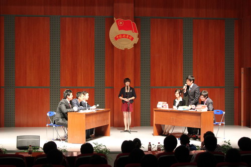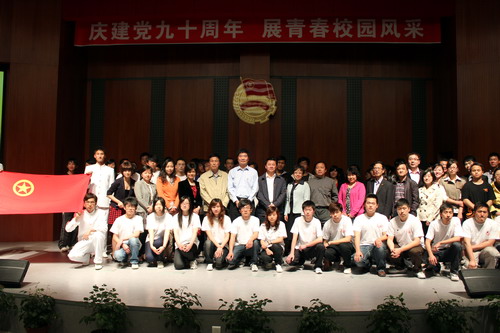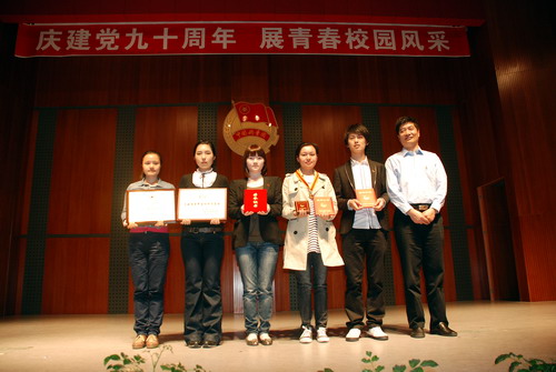 本次表彰大会以“庆建党九十周年,展青春校园风采”为主题,通过新颖的节目形式贯穿整场大会。校广播台选送的诗歌朗诵《青年》,气势磅礴,激情荡漾,他们代表我校青年学子向祖国说出了心里话,激扬的诗句尽展当代青年的文艺风采。校辩论队带来的表演赛以“一个优秀团组织是以活动为重还是以学习为重”为辩题,辩手们以灵活的思维、机制的答辩,呈现了一场智慧的较量。我校优秀社团的代表——聚点剧社精心排演了短剧《金色的鱼钩》,演员们精湛的演技,经典的剧情,为本次大会增添了一抹不一样的色彩。
