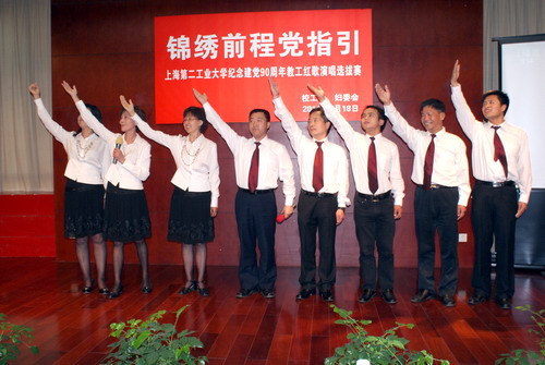 为隆重纪念中国共产党成立90周年,深情回顾党的奋斗历程,热情讴歌党的光辉业绩,歌颂教师高尚的师德风范,增强全校教工的凝聚力,进一步坚定跟党走的理想信念。我校教工以“锦绣前程党指引”为主题的纪念建党90周年红歌演唱选拔赛于5月18日下午拉开了帷幕。