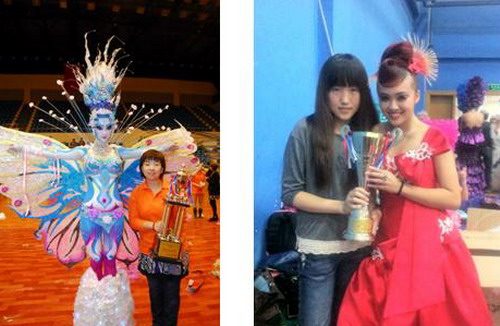 人物形象设计专业教师杨慧,继夺取香港亚洲化妆大赛冠军后,又一次技压群雄,荣获人体彩绘梦幻化妆组金奖,并以绝对优势摘取全场总冠军的桂冠。2010级杜伟瑛同学,凭借卓越的技术,高贵的发型设计,优雅的整体晚宴造型,获得晚宴发型设计组金奖。