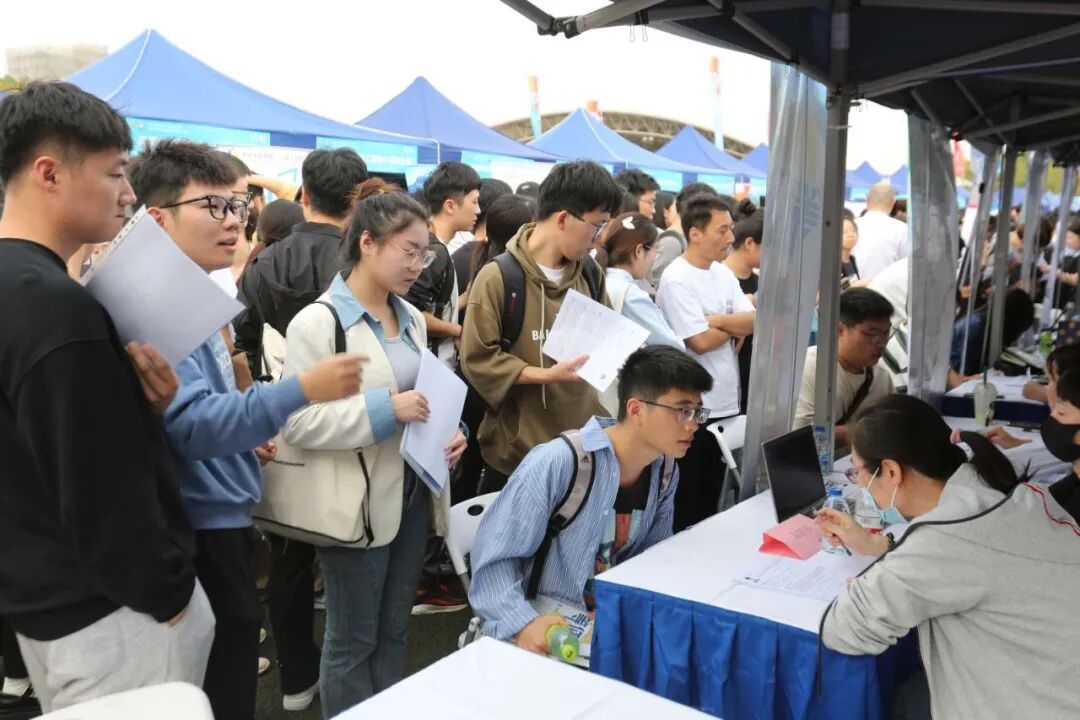 10月25日,上海第二工业大学浦东校区的操场上人头攒动。上海市2024届秋季高校毕业生系列招聘活动暨2023年上海市秋季校园招聘月活动在此启动。沪上各大高校的毕业生坐着学校提供的大巴车组团前来求职,2.5万名学生现场参会,投递简历超23万份,达成初步意向约6000余人次。