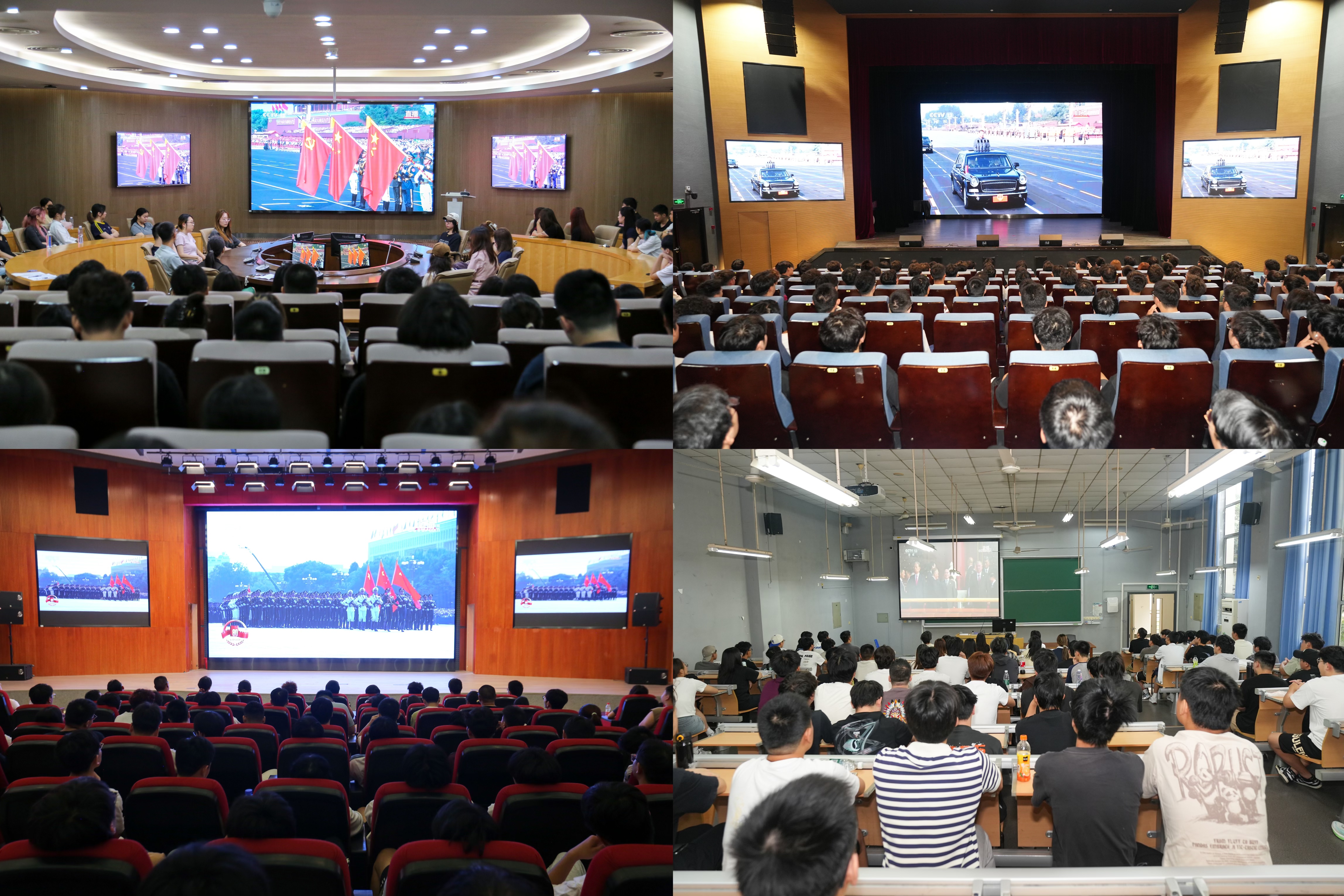 我校组织师生在学生活动中心二楼报告厅、图文信息中心三楼报告厅、学术交流中心201、301会议室、各学院会场、教室等场所集中收看大会直播盛况,共同见证这一庄严而伟大的时刻。广大师生激情澎湃、热血沸腾,纷纷表示,纪念抗战胜利80 周年,不仅是对历史的回顾,更是对未来的展望。我们要铭记历史、缅怀先烈,传承和弘扬伟大的抗战精神。用奋进的精神、自强的担当,创造新的历史,奏响振兴中华、强国有我的时代强音。