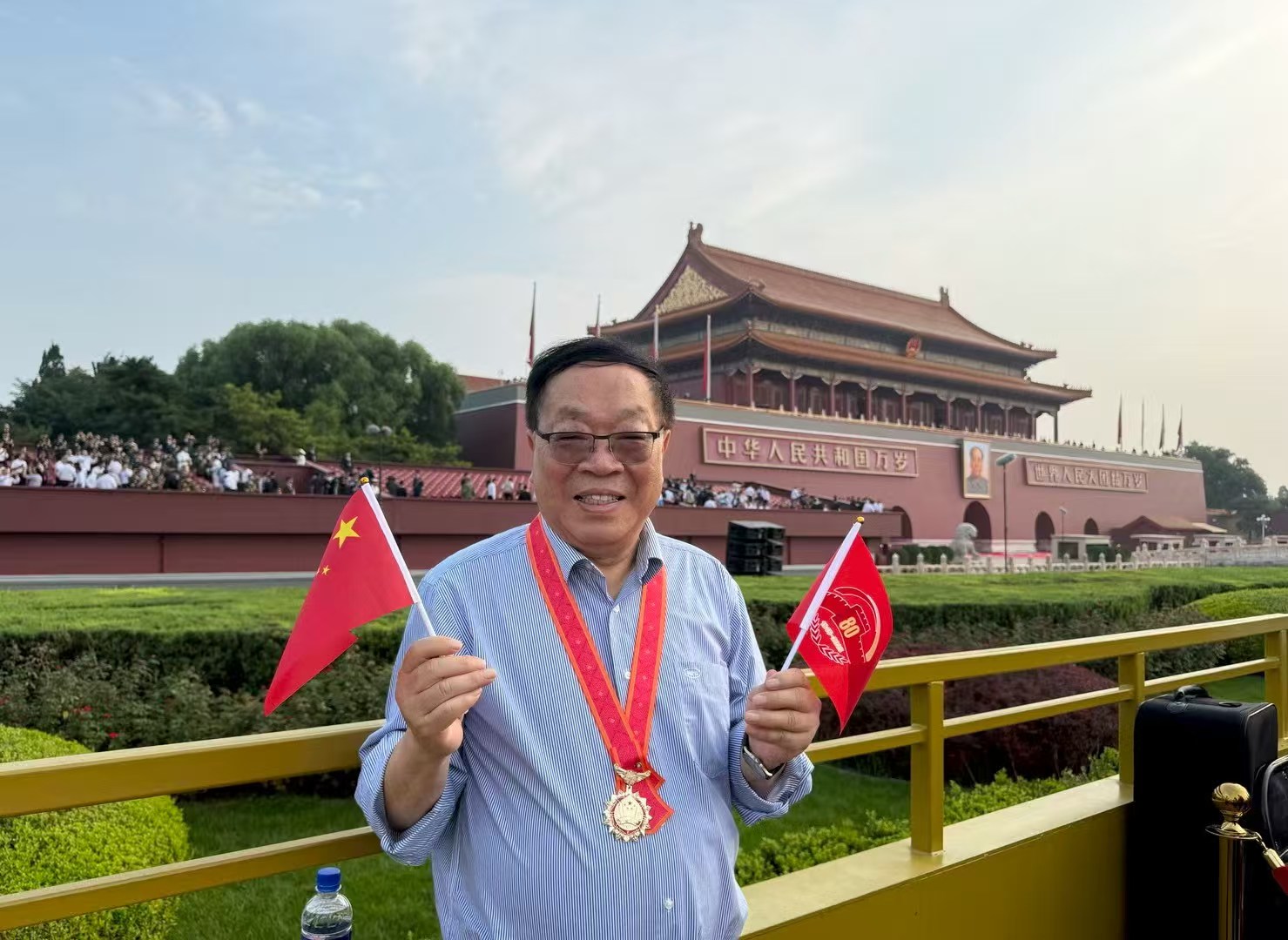 全国著名劳模、改革先锋、最美奋斗者、上海劳模学院院长包起帆校友受邀在纪念大会现场观礼。当气势磅礴的人民解放军和最尖端的国防装备从面前威武行进时,包起帆心潮澎湃,他说:“当我站在天安门广场,看着五星红旗在千人合唱团的激昂歌声中冉冉升起,心中的自豪感油然而生。那整齐划一的方阵、先进精良的装备、铿锵有力的步伐,不仅展现了我们国家强大的国防实力,更让我深刻感受到了中华民族在党的领导下,从苦难走向辉煌的磅礴力量。我要把今天的震撼与自豪带回校园,带进课堂,告诉每一位学生:劳动最光荣,创造最幸福。我们要把阅兵式上看到的‘中国力量’,转化为岗位上攻坚克难的‘中国创造’,用劳模精神、劳动精神、工匠精神为下一个辉煌的八十年添砖加瓦、贡献力量!”