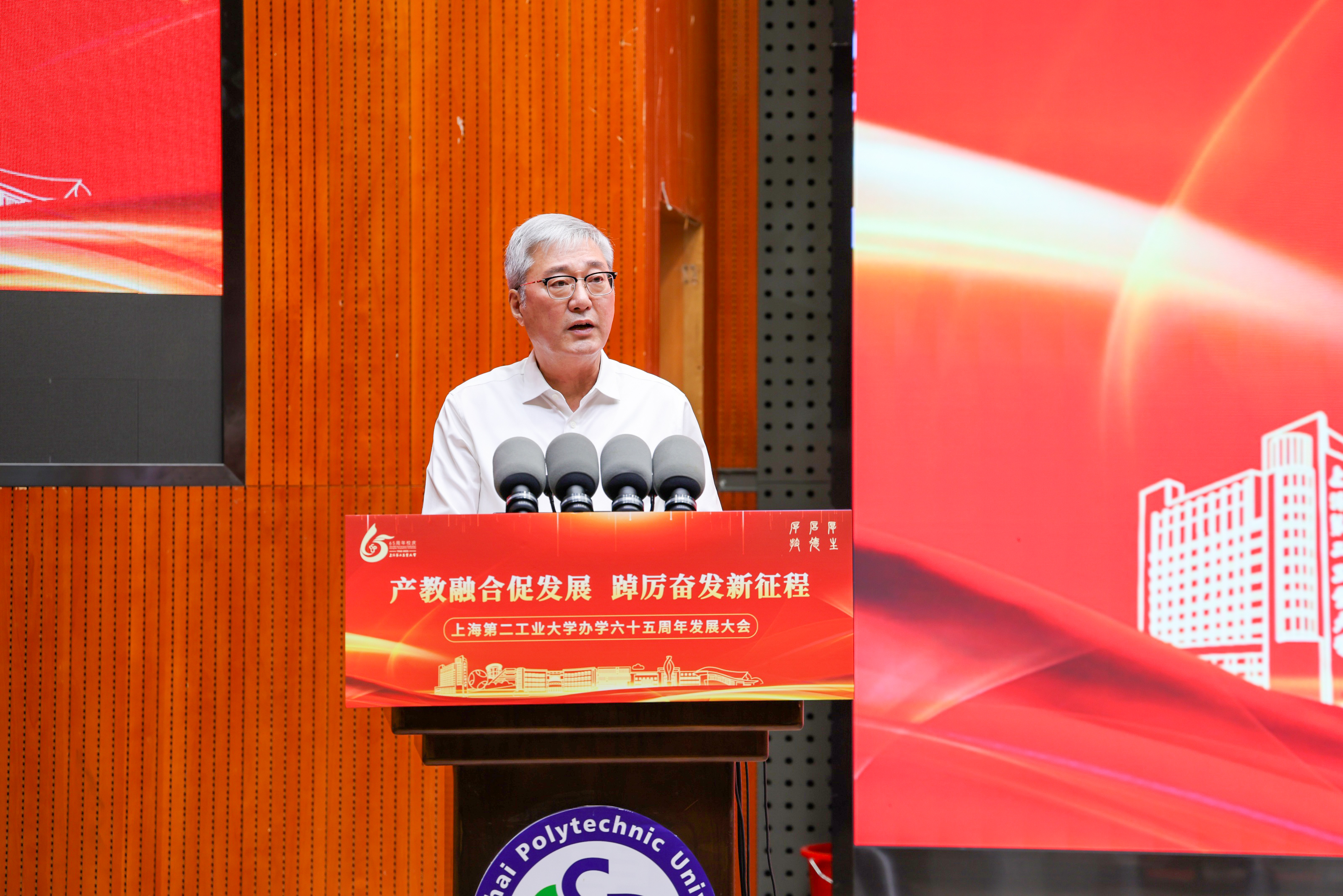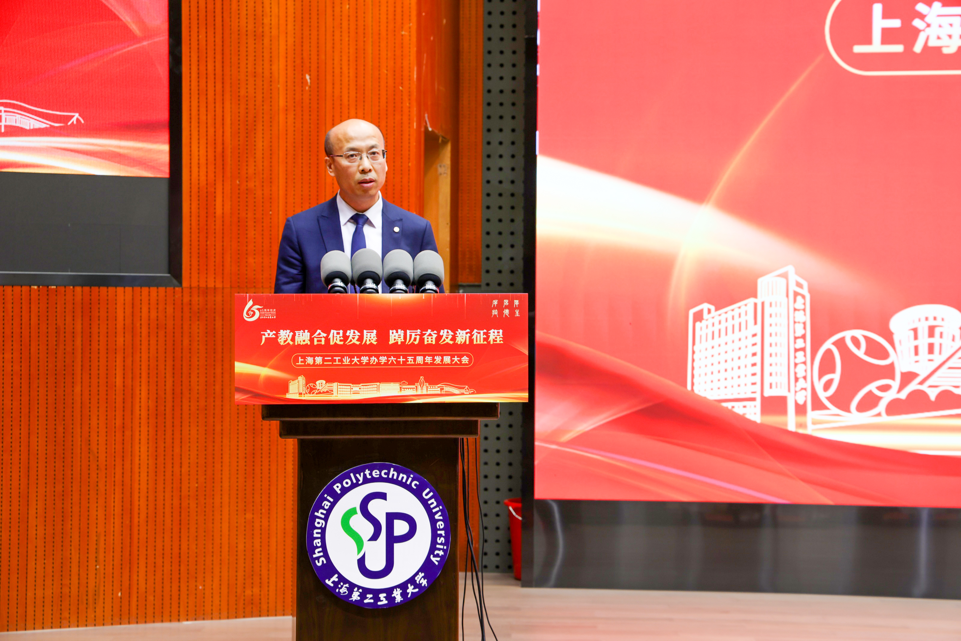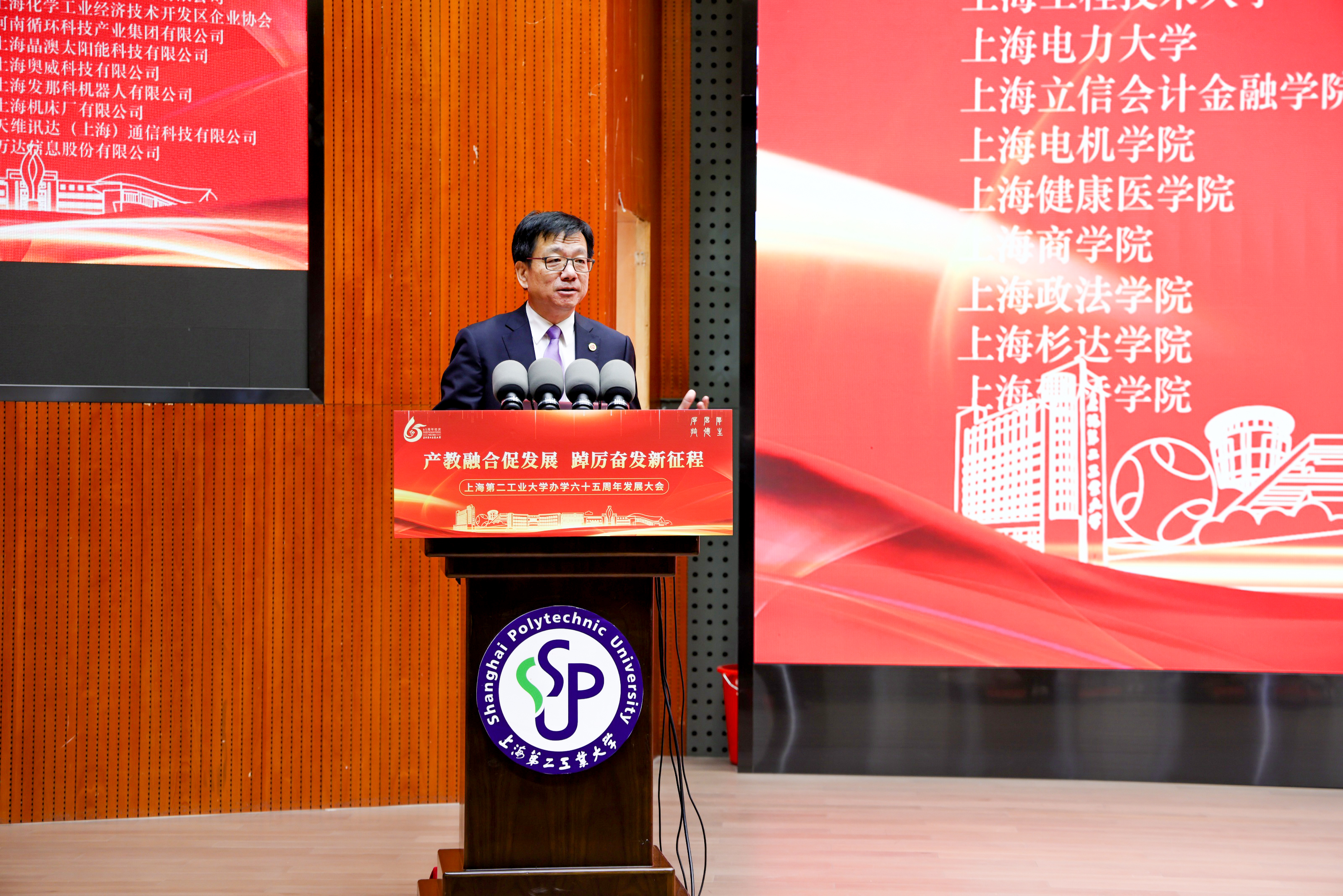 浦东新区副区长张娣芳在致辞中表示,二工大办学六十五周年既是学校发展史上的重要里程碑,也是浦东产教融合、人才培育事业的珍贵时刻。在二工大落户浦东的二十多年里,学校办学层次持续跃升,产教融合成果丰硕,服务能力持续增强。希望未来二工大能够当好人才培育排头兵、产教融合连接器、区域服务先行者,与浦东新区共同携手谱写“校地共生、协同发展”新篇章。