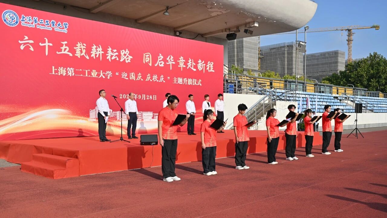为庆祝中华人民共和国成立76周年,庆祝学校建校65周年,9月28日清晨,学校在体育场举行了以“六十五载耕耘路 同启华章赴新程”为主题的升旗仪式。校领导,相关职能部门、各学院负责人、学生工作负责人,师生代表1400余人参加仪式。仪式由我校党委副书记吴沛东主持。