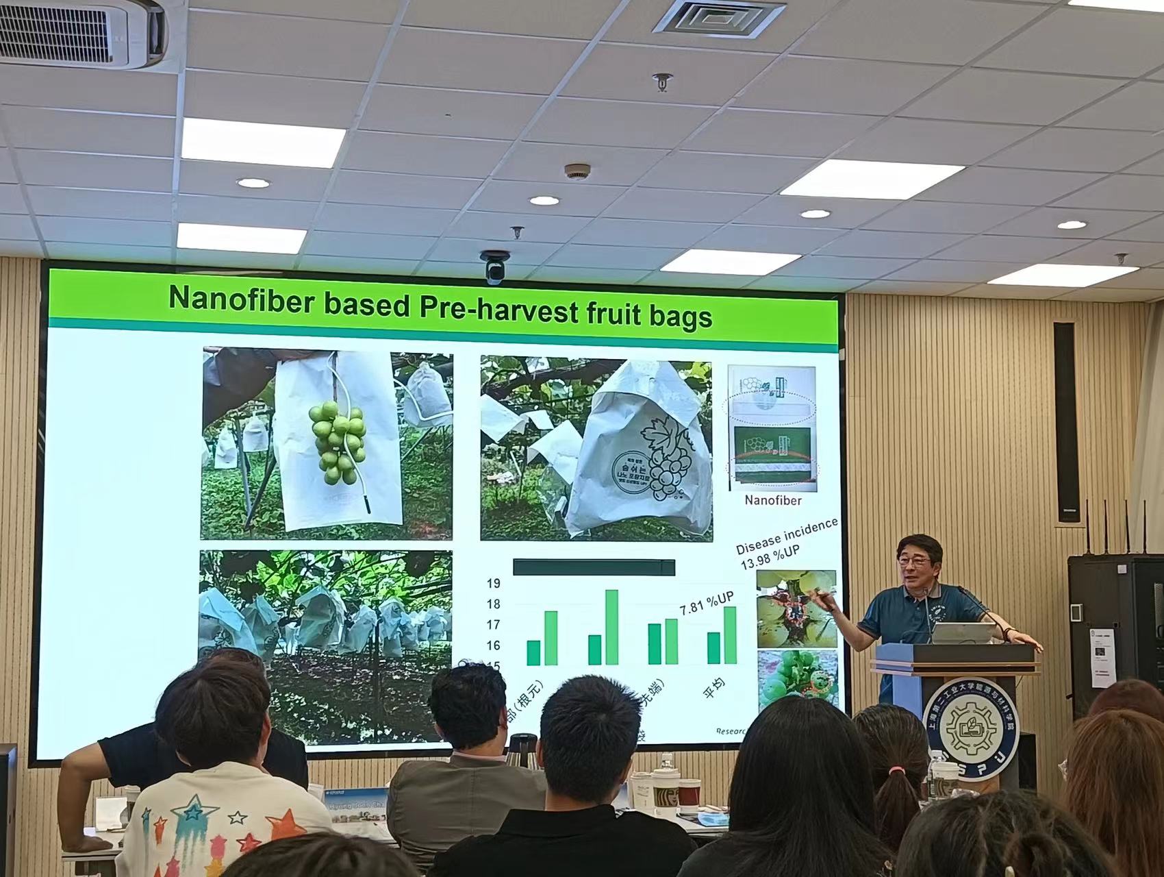 学术报告环节,日本工程院院士、信州大学副校长金翼水教授以“Application of Nanofibers in Composite Materials”为主题带来了一场生动且极具深度的报告,介绍了纳米纤维复合材料在不同领域的产业化应用。