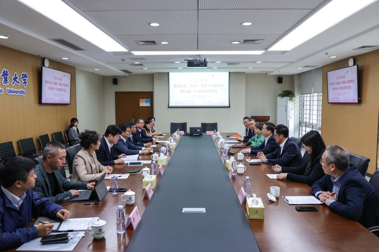 10月21日上午,东浩兰生(集团)有限公司党委书记、董事长郑元湖,党委副书记、总裁李栋,党委委员、副总裁周瑾等一行来校考察座谈并出席战略合作签约仪式。校党委书记陆敏、校长谢华清、副校长丁彬等接待了郑元湖一行。