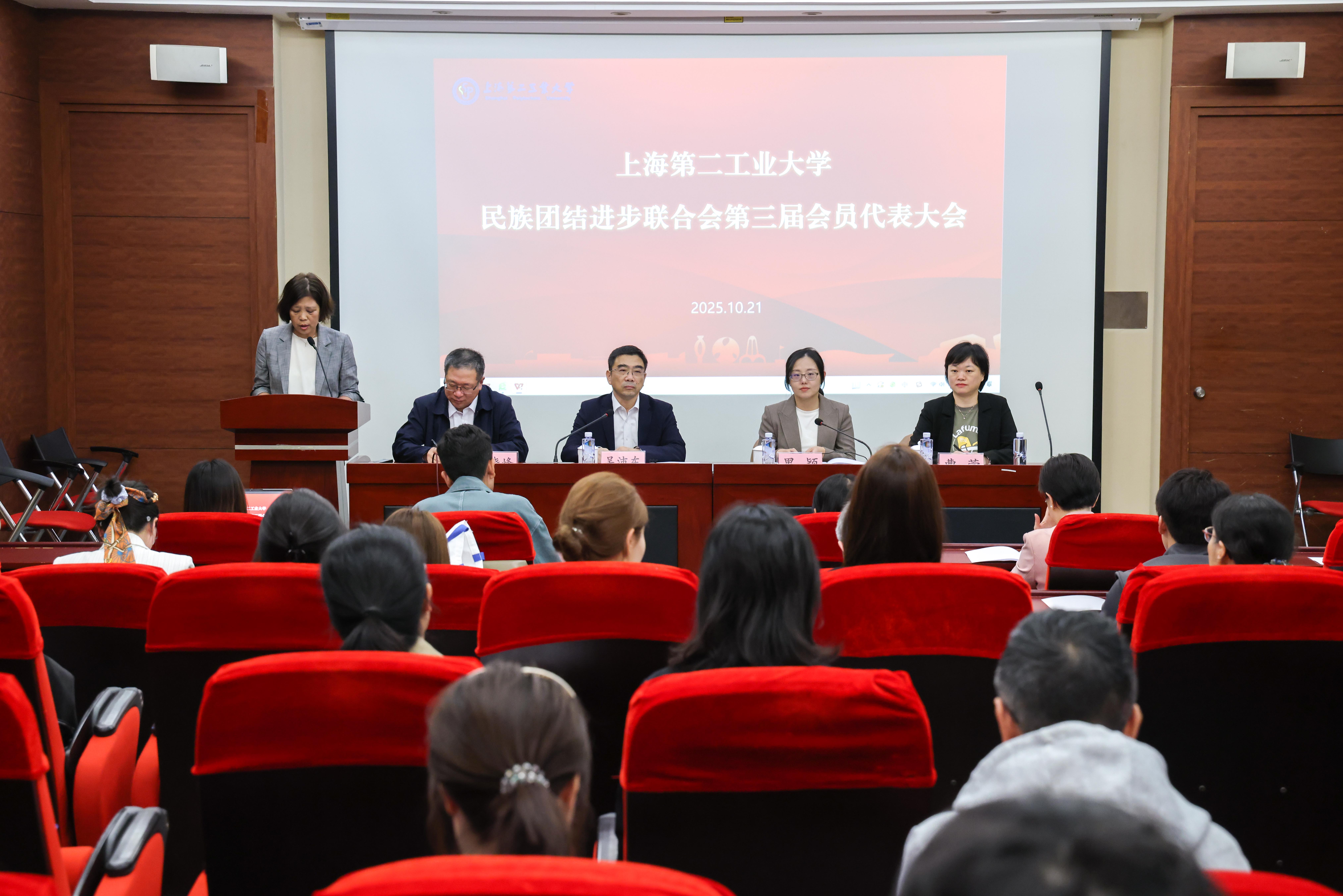 在庄严的国歌声中,大会正式拉开帷幕,依次审议通过多项重要议程。第二届委员会副会长哈力木拉提·吐鲁洪作了题为《凝聚团结奋进力量 服务学校发展大局 谱写新时代民族工作新篇章》的工作报告,报告回顾了过去六年多来第二届民族联搭建多元平台,成立“石榴籽”民族团结工作室、民族特色社团,开展民族生帮扶、党员结对,开设民族传统体育校本课程,组织“民族风情文化节”“民族团结主题教育周”主题活动等方面取得的丰硕成果。会议表决通过了更名议案,原“上海第二工业大学少数民族联合会”正式更名为“上海第二工业大学民族团结进步联合会”,更鲜明地体现了铸牢中华民族共同体意识的时代主题。同时,会议审议通过新版联合会章程,完善组织架构与职能,促进各民族广泛交往交流交融,为联合会服务学校高质量发展提供制度保障。