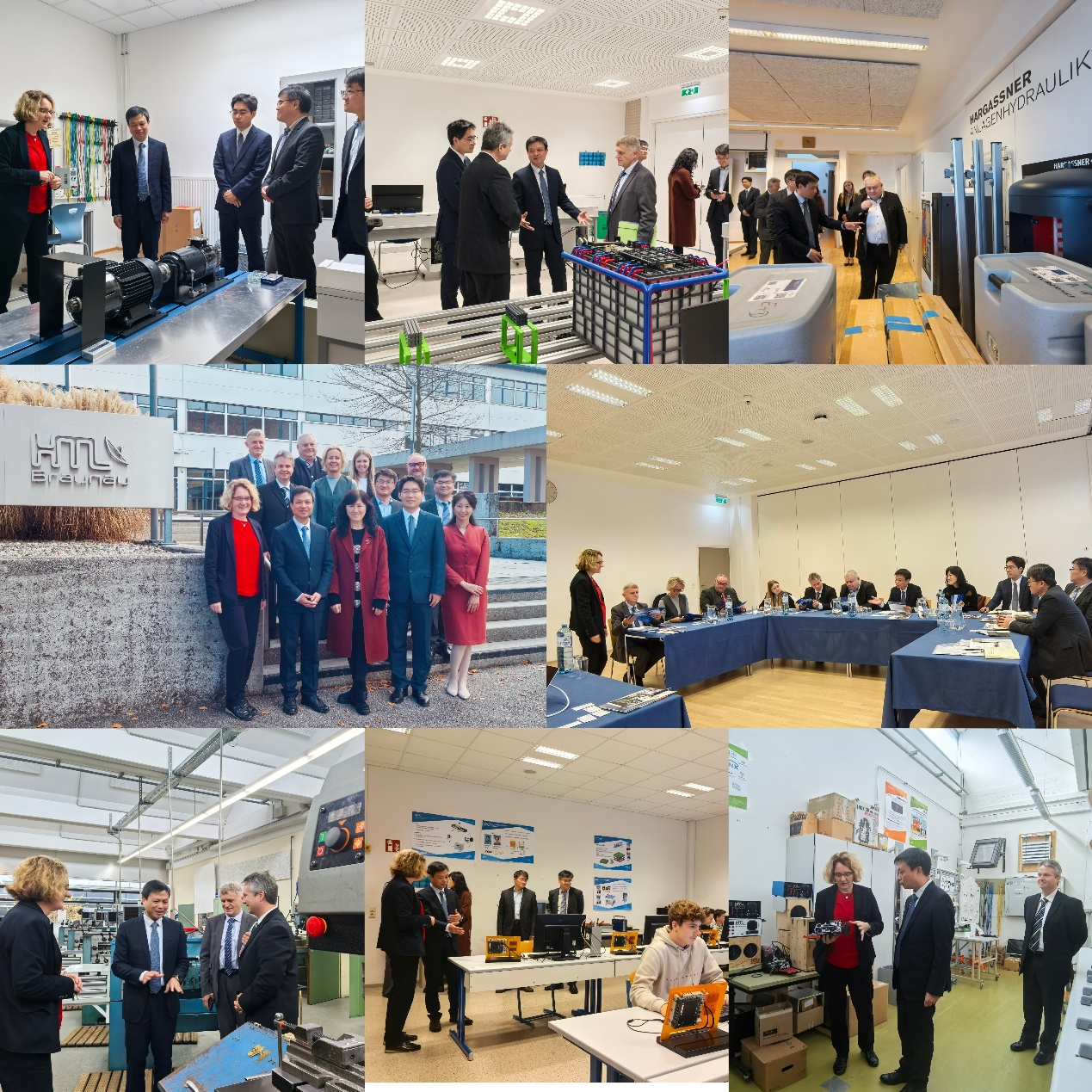访问奥地利布劳瑙高等技术学院期间,校长Schneeberger Gerda女士分享了学院历史、五年制工程师培养的核心理念及实践成果。基于两校“实践导向”共同办学特点,双方探讨了在中职校教师培养、学生实习、教师互访、短期学分项目等方面建立合作关系的总体原则与方向。代表团深入机器人维修与操作、电子技术、信息技术、多媒体制作、机械工程等专业课堂和实验室,实地观摩了学生团队解决工业实际问题的过程,系统学习其“项目贯穿式”课程设计体系,以及企业项目引入机制、企业导师深度参与教学的全流程管理模式,为我校实践教学改革提供重要参考。