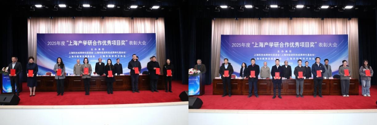 12月26日,2025年上海产学研合作优秀项目奖表彰大会在上海市政协大礼堂举行,上海市政协、上海市科协、上海市教育发展基金会等领导出席并颁奖。经形式审查、初评、复评、终评等多轮评选,共评出38项获奖项目,其中,特等奖2项、一等奖5项、二等奖15项、提名奖16项,我校作为牵头单位荣获二等奖2项、提名奖1项,东方网、上海科技报、上观新闻等多家媒体对我校获奖项目进行了关注与报道。