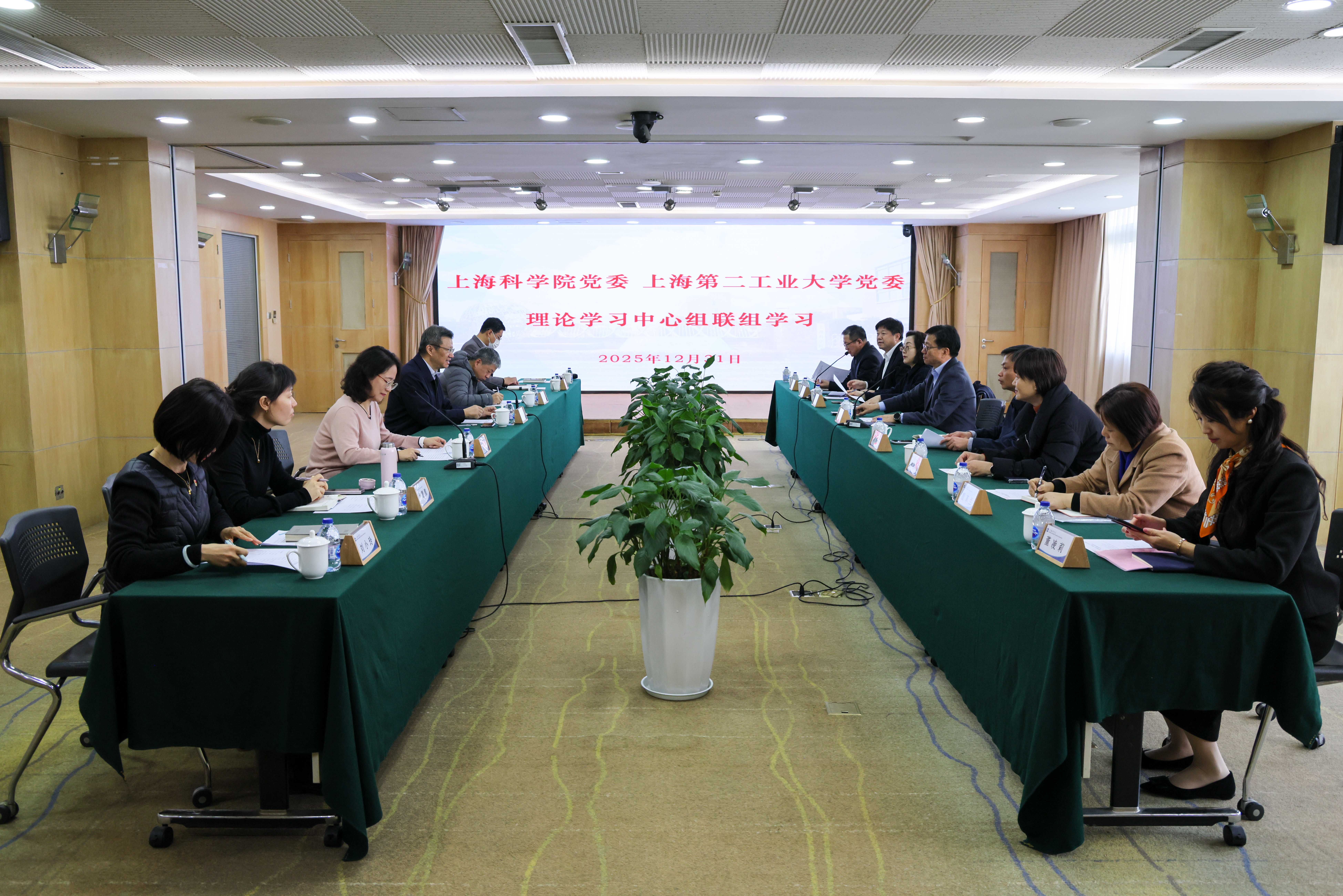 为深入学习贯彻党的二十届四中全会精神,深刻理解“加快高水平科技自立自强,引领发展新质生产力”战略部署,科学谋划“十五五”高质量发展蓝图,12月31日下午,我校与上海科学院开展党委理论中心组联组学习,专题学习《习近平谈治国理政》第五卷并进行研讨交流。