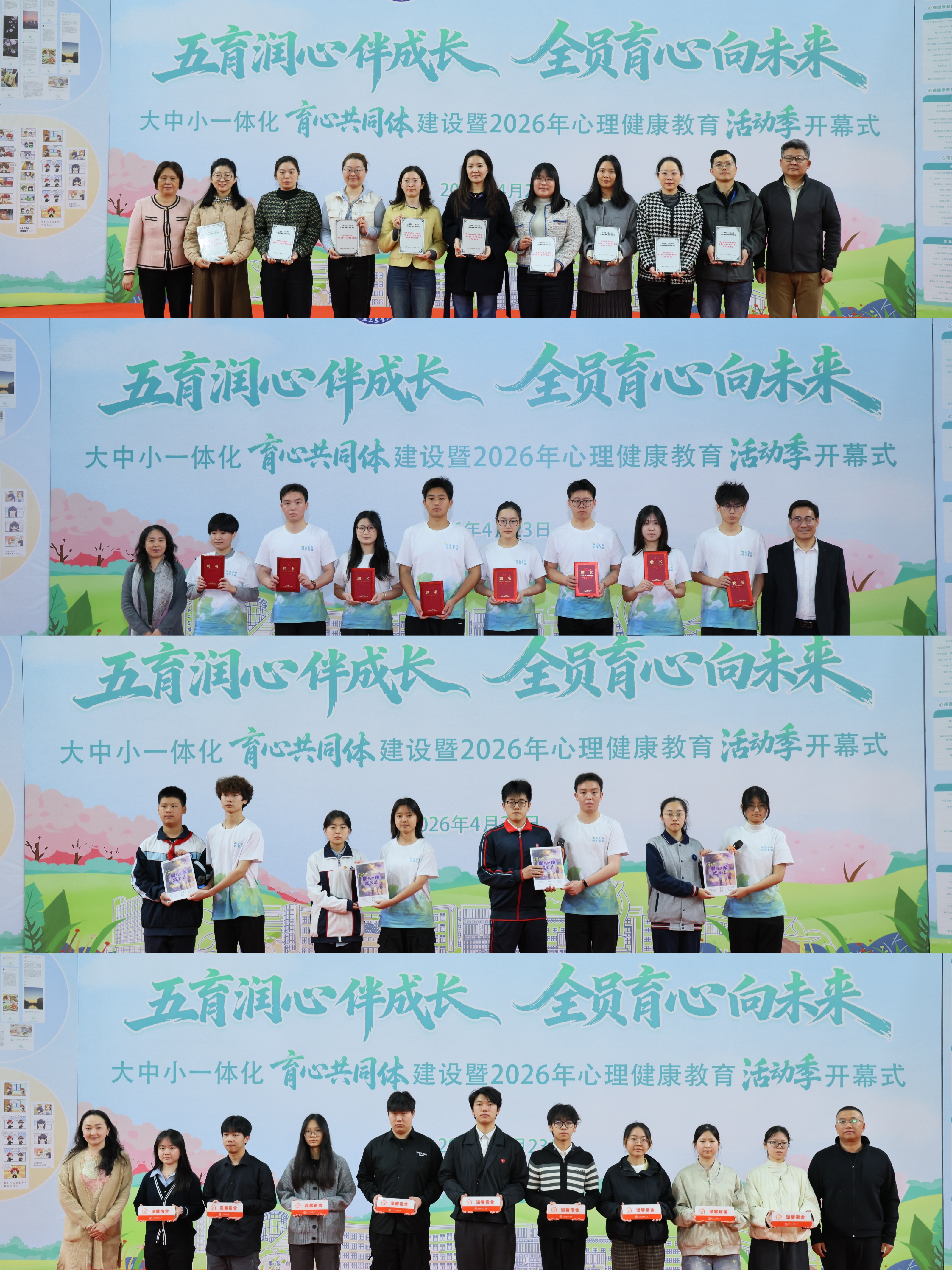 本次心理健康活动季以“五育润心伴成长·全员育心向未来”为主题,李志清、杨长亮、刘明波、陈优共同为活动季揭幕。