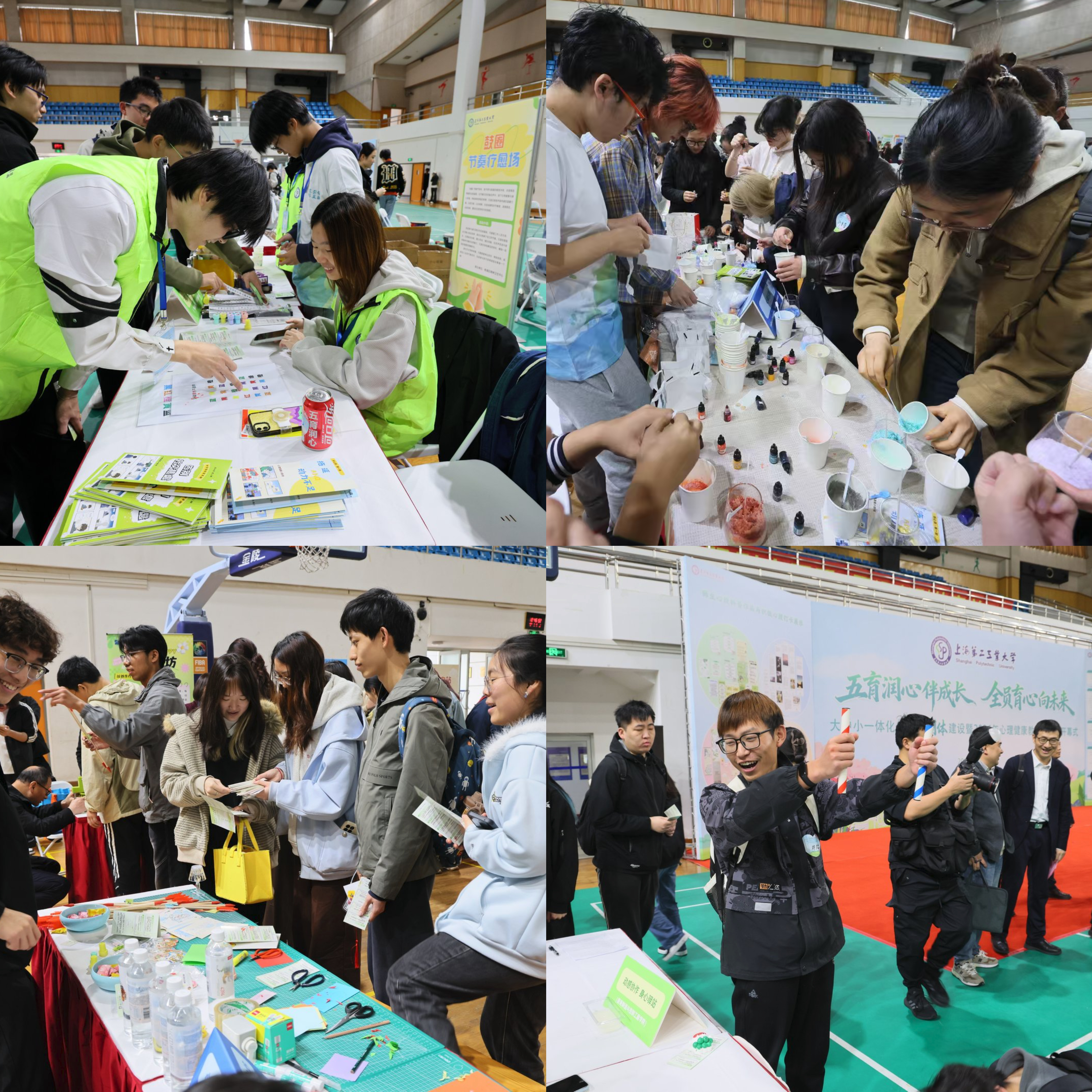 游园会同步开启,亮点纷呈,校心理健康教育与咨询中心、中职校及附属中学、杨浦区精神卫生中心、浦东新区精神卫生中心、心理健康教育团队、“绿动心弦”朋辈成长联盟以及各学院联合承办22个摊位活动。现场师生积极体验参与,在互动体验中将心理知识转化为可感知的心灵收获。