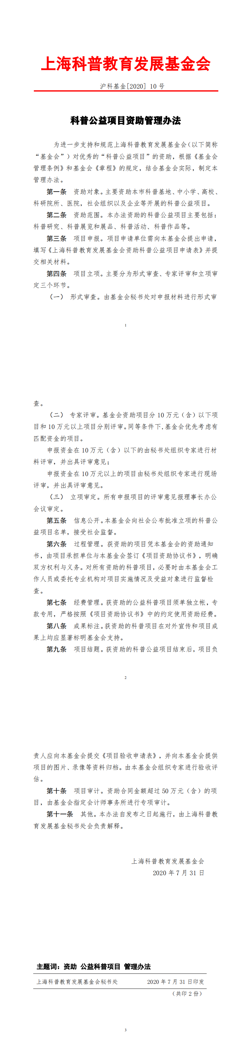 各二级单位,机关及直属各部门: 上海科普教育发展基金会发布《2023年度科普公益项目资助申请通知》