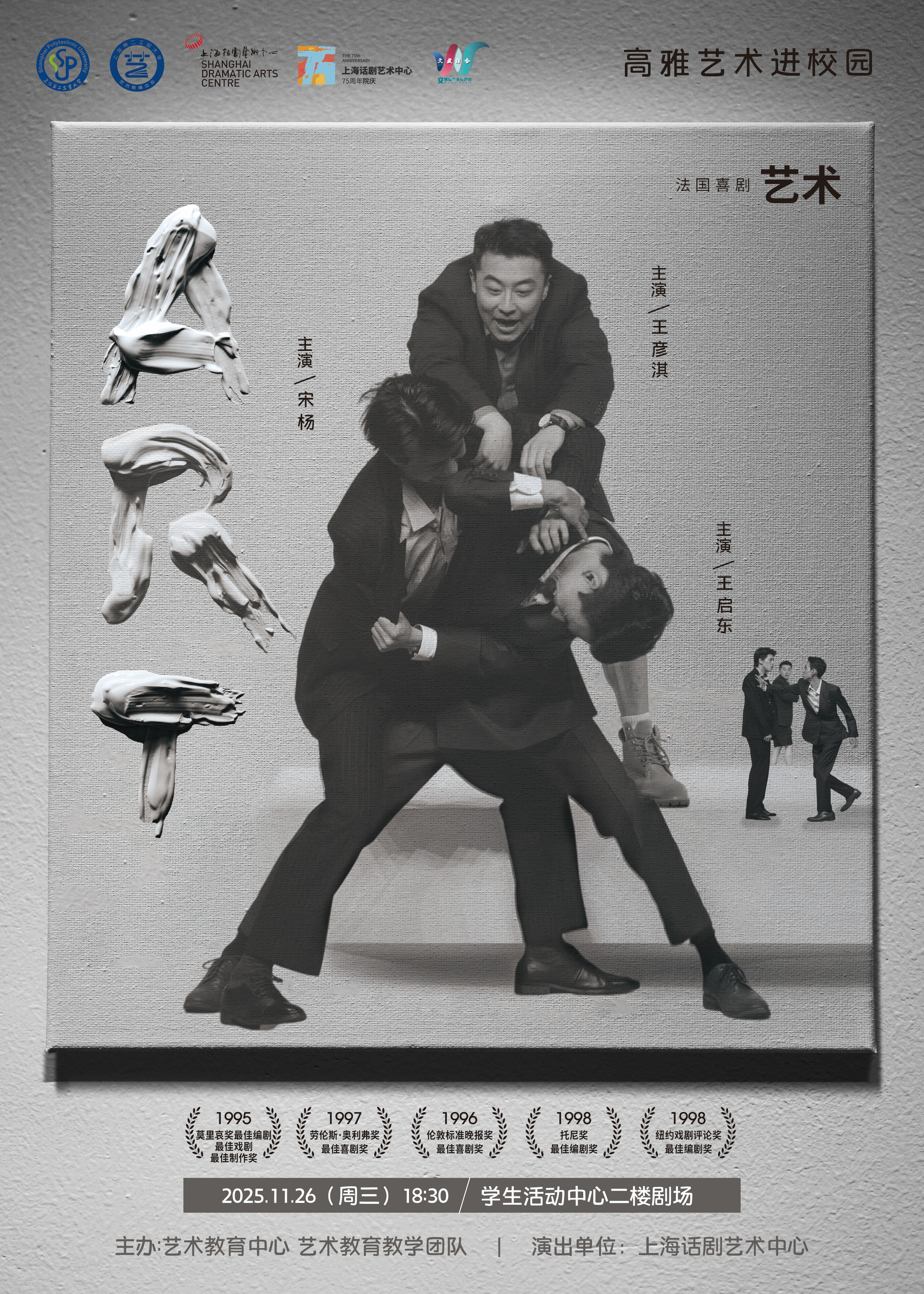 法国当代喜剧《艺术》即将走进二工大校园,带领大家走进这场关于友情、品味与自我认同的巧妙思辨。欢迎广大师生积极索票!