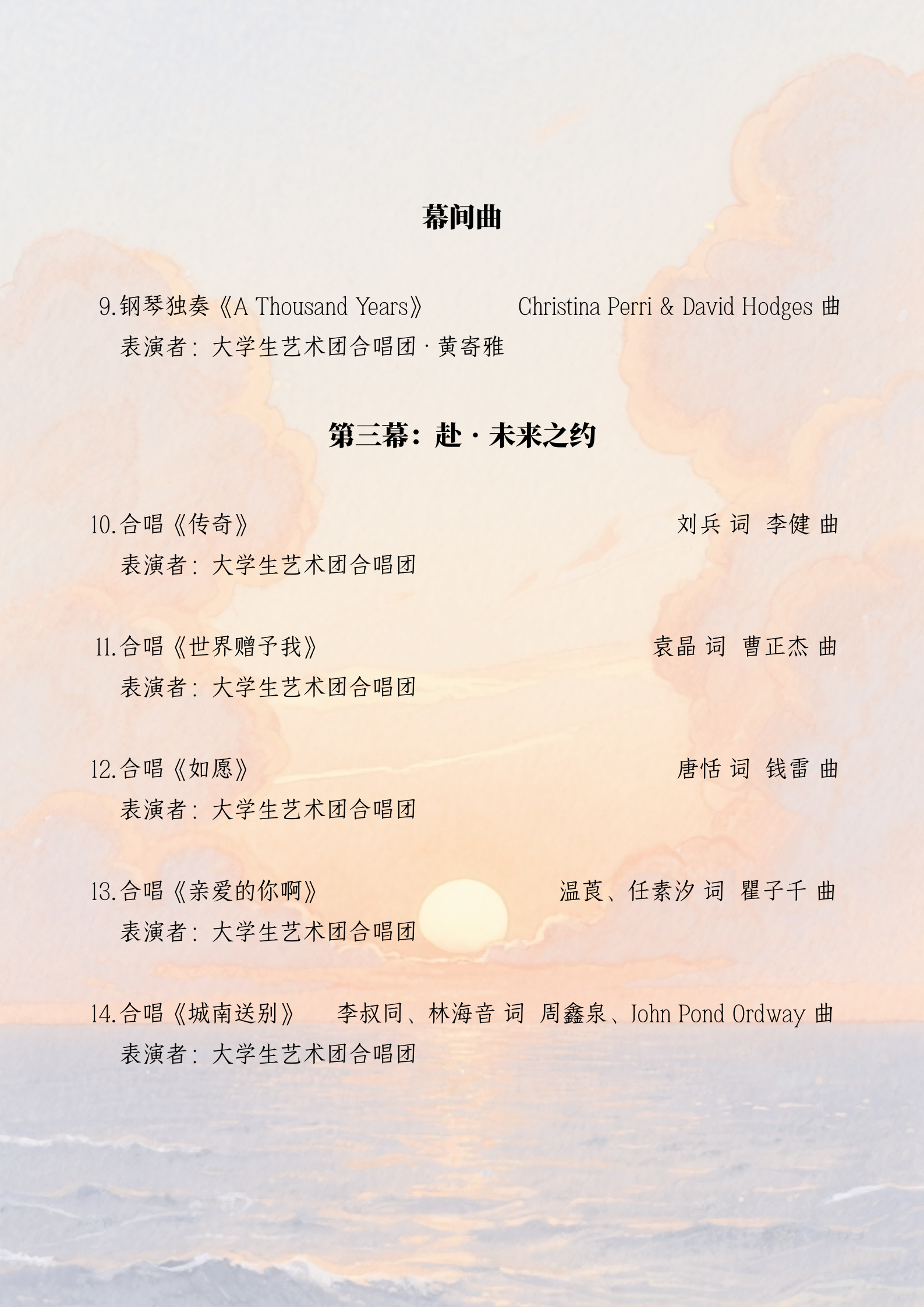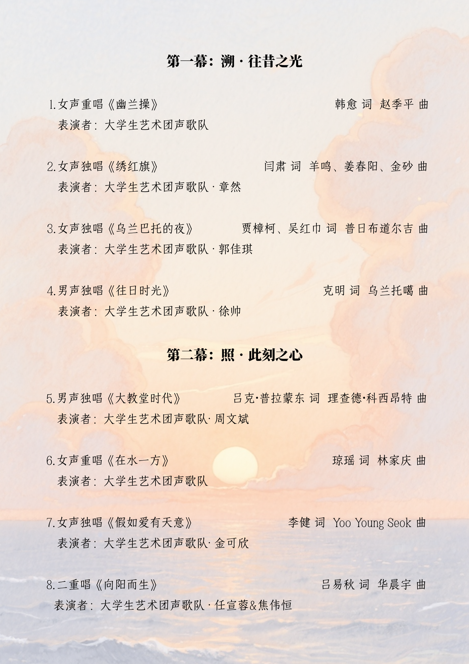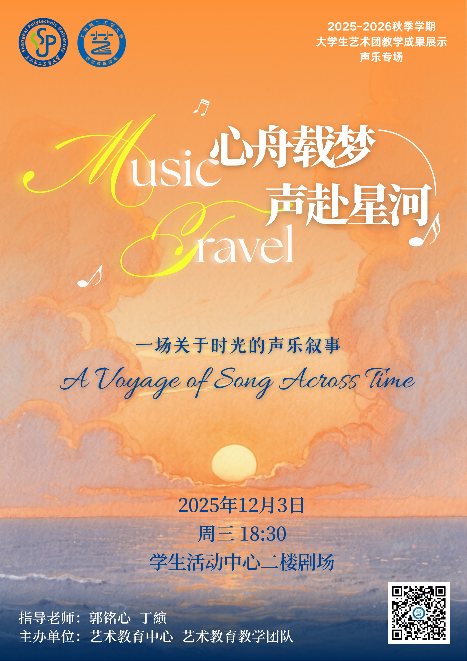 2025-2026秋季学期大学生艺术团教学成果展示声乐专场《心舟载梦・声赴星河》即将开演,此次专场将由校大学生艺术团合唱团与声歌队合作呈现,这是一段用歌声编织的时光之旅,更是一次青春热忱的纯粹绽放,欢迎师生积极索票!