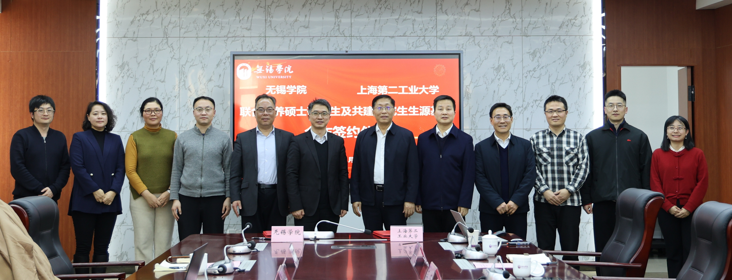 1月9日,上海第二工业大学与无锡学院联合培养研究生及共建研究生生源基地签约仪式在无锡学院举行。无锡学院党委书记张永宏,党委常委、副校长韩建刚,学科建设与研究生管理处、相关学院负责人;我校党委副书记、副校长李志清,研究生处、资环学院负责人等参加活动。会议由韩建刚主持。