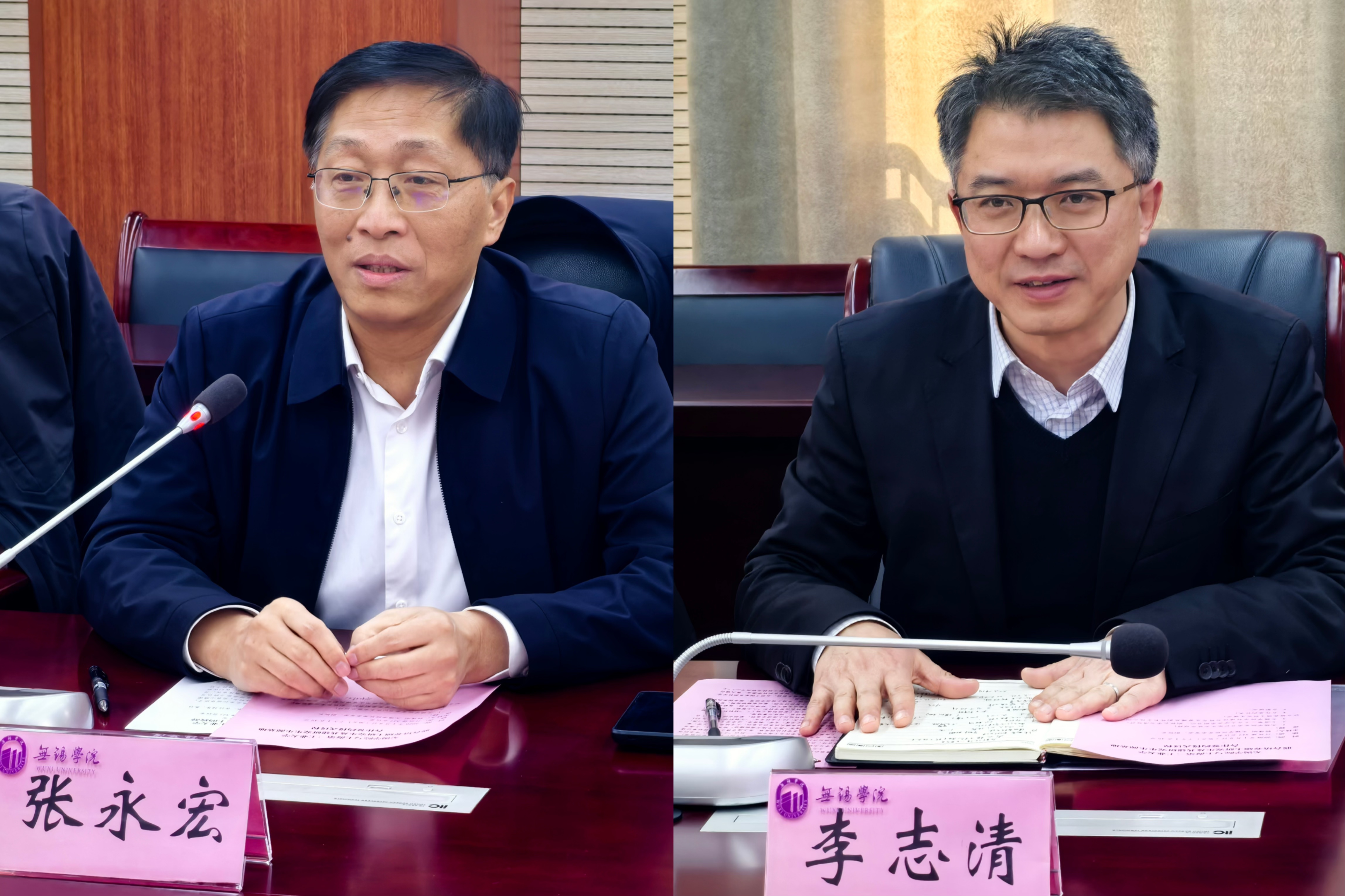 李志清介绍了我校的办学优势与发展规划,作为上海市博士学位授权建设(培育)单位,在绿色低碳、智能制造、集成电路等领域实力雄厚。他表示,两校地理位置便利,学科布局互补性强,在长三角一体化发展战略背景下,深化产教融合、校际合作恰逢其时,期待与无锡学院在研究生培养、科研创新、人才交流等方面开展深度合作,共促发展。