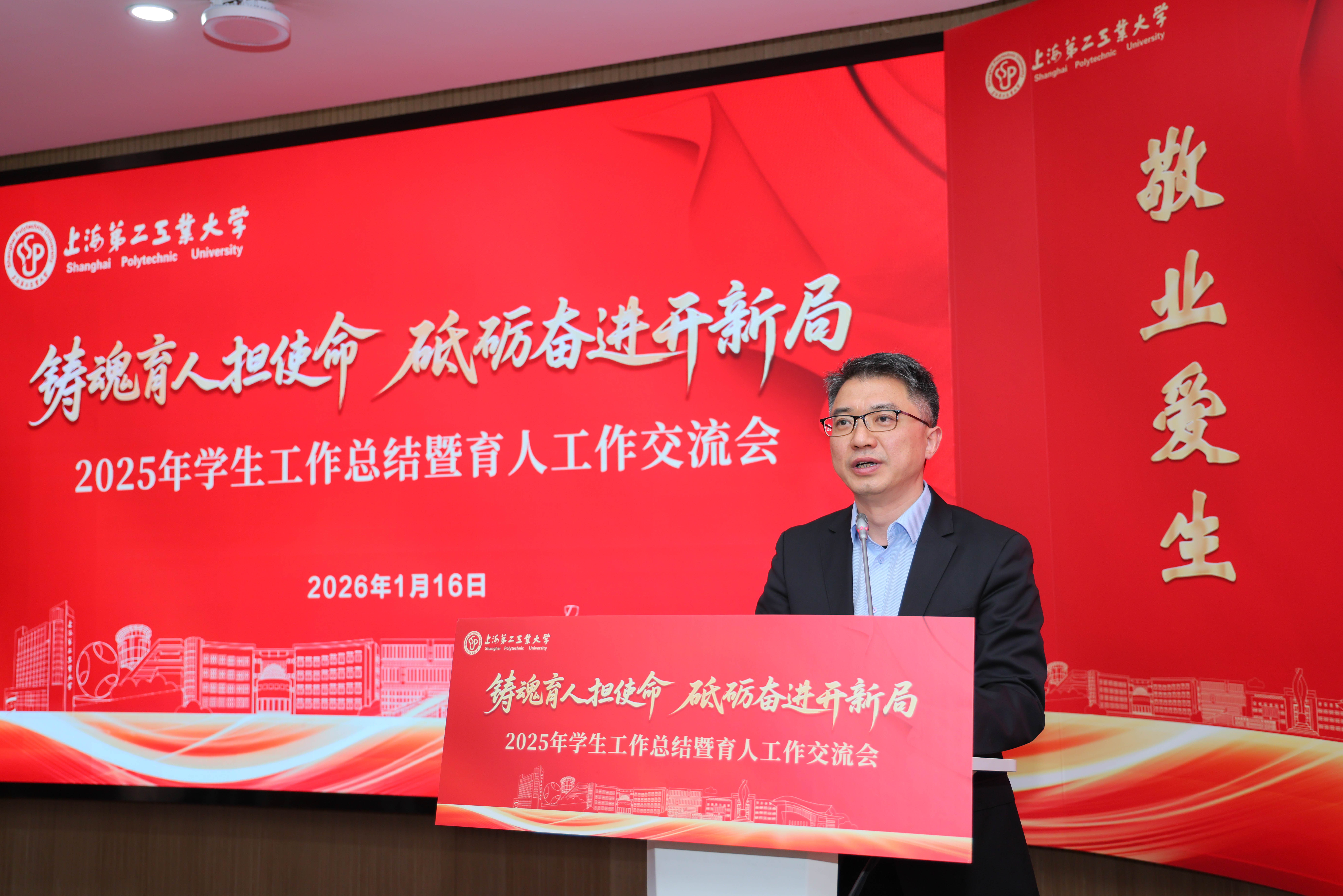 1月16日下午,为深入学习贯彻习近平新时代中国特色社会主义思想,全面落实党的二十大及历次全会与全国教育大会精神,系统总结年度学生工作成效,交流育人经验、凝聚发展共识,上海第二工业大学2025年学生工作总结暨育人工作交流会在学术交流中心301报告厅举行。校党委副书记、副校长李志清出席会议。组织部、宣传部、教务处、研究生处、招生就业处、保卫处、后勤服务中心、马克思主义学院、团委、学(研)工部相关职能部门负责人、各学院分管学生工作副书记及全体辅导员参会。