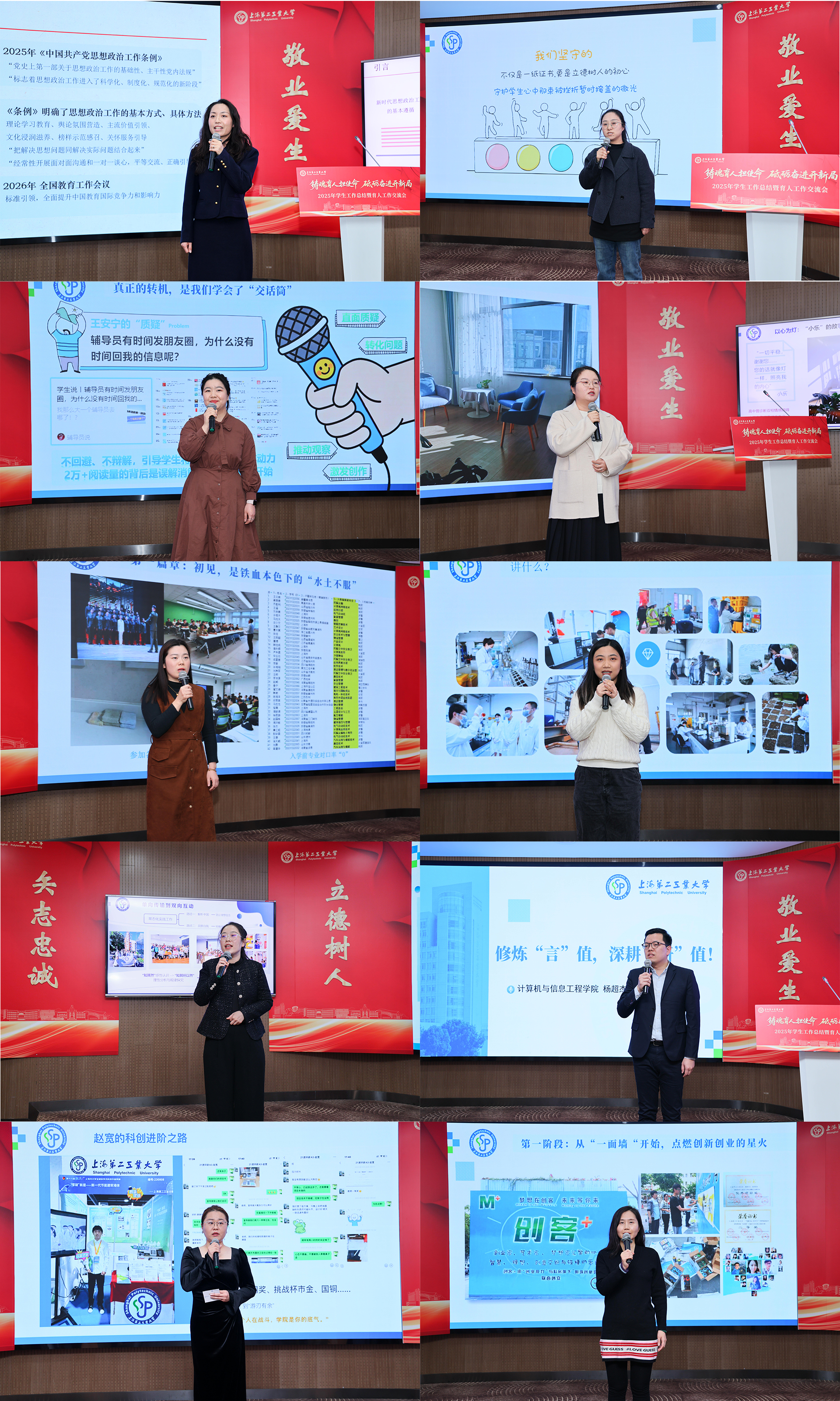 在育人经验分享环节,副书记及辅导员共10名代表分享了他们的实践智慧,展现了学校多元育人模式的生动实践。