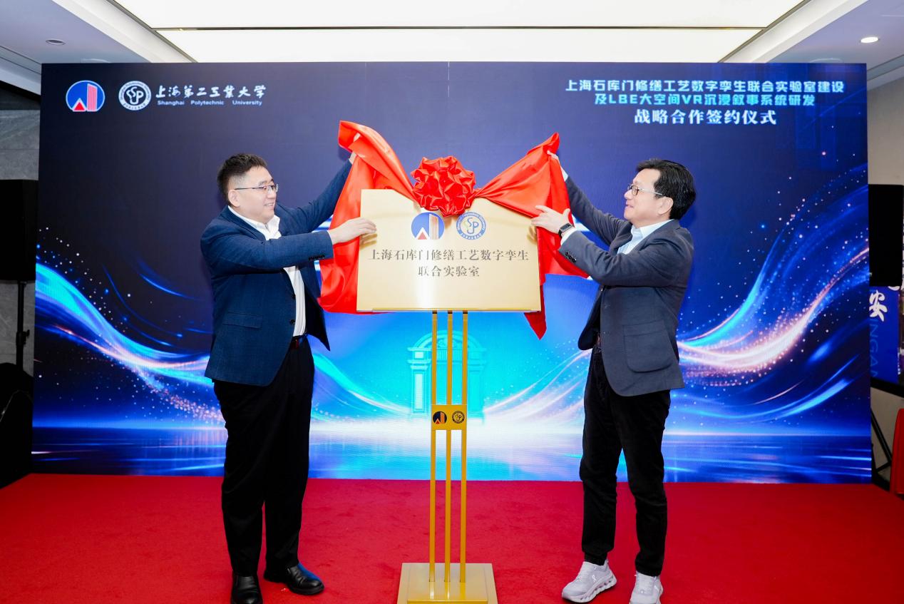 随后,在与会嘉宾的共同见证下,产学研合作办公室主任沈晓峰代表学校与静安建筑装饰实业股份有限公司签署了战略合作协议,艺术与设计学院院长沈法签署了《万门之城》项目合作协议。该项目将通过1:1数字复刻与沉浸式VR叙事,围绕“信仰长廊”“折叠魔宫”“守时重任”“万门归宗”四大篇章,构建一场45分钟的石库门修缮技艺与红色文化体验之旅,旨在成为青少年思政教育、红色文化传播与城市记忆传承的数字载体。