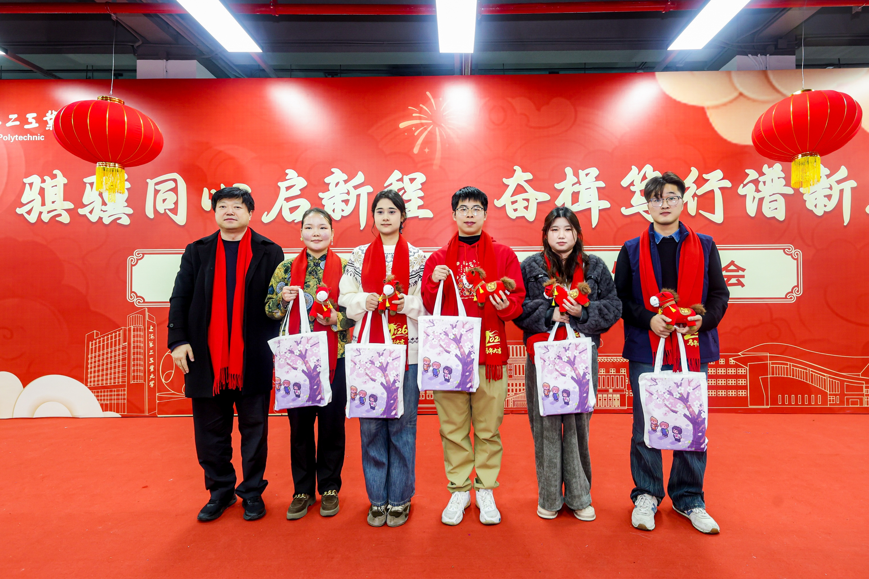 随后的抽奖环节惊喜连连,将现场气氛推向高潮。校领导白建峰、李志清、谢华清、陆敏依次抽取青春驰骋奖、马到功成奖、龙马精神奖、骏马腾飞奖并为幸运学子颁奖,送出寓意吉祥的新春好礼。