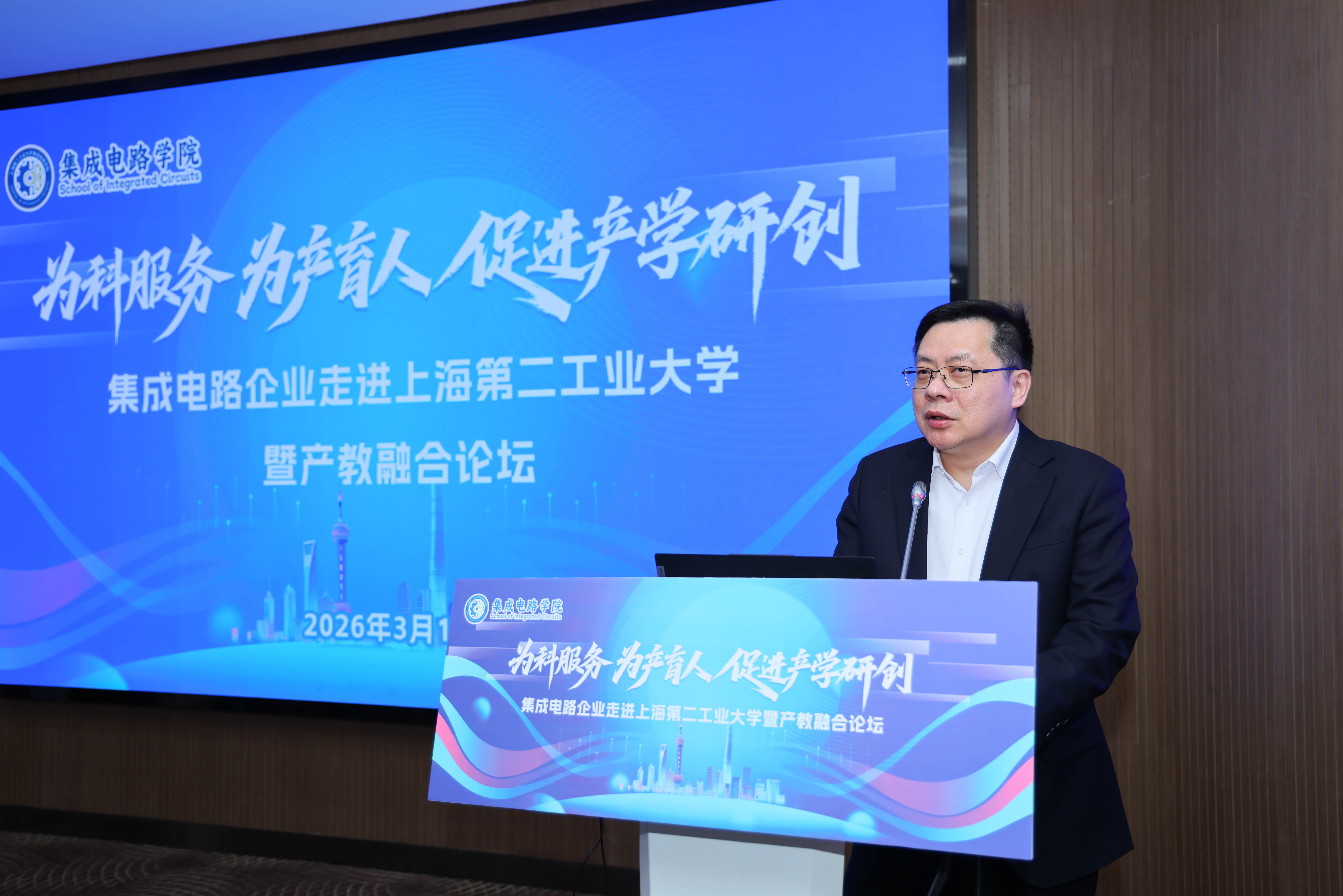赵震在讲话中指出,国家高度重视集成电路产业发展,出台了一系列支持政策,刚刚发布的“十五五”规划就包括对集成电路新产业、新赛道的专门部署。作为科技创新策源地和人才培养主阵地,主动对接国家战略需求,在提升服务贡献能级上展现新作为,是高校责无旁贷的使命担当。希望二工大强化需求牵引,深化产教融合,突出改革创新。他期待各位企业家关心支持二工大集成电路学科发展,关心支持上海教育事业发展。