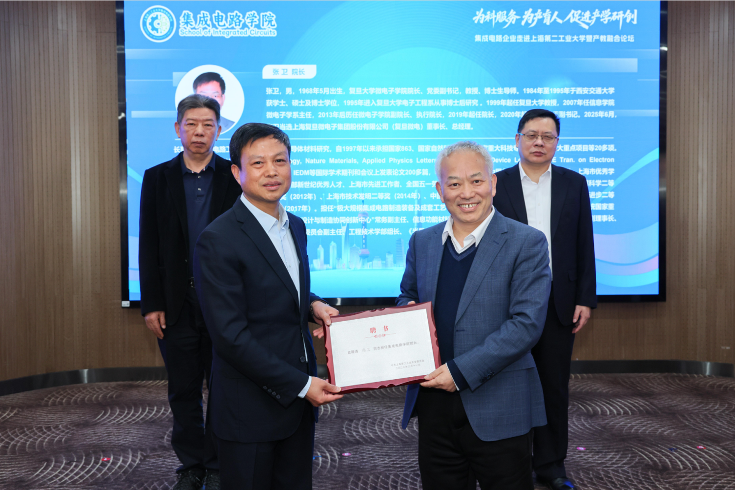 谢华清还向复旦大学微电子学院院长、上海复旦微电子集团有限公司董事长张卫教授颁发了聘书,聘请张卫教授领导我校集成电路学院建设。