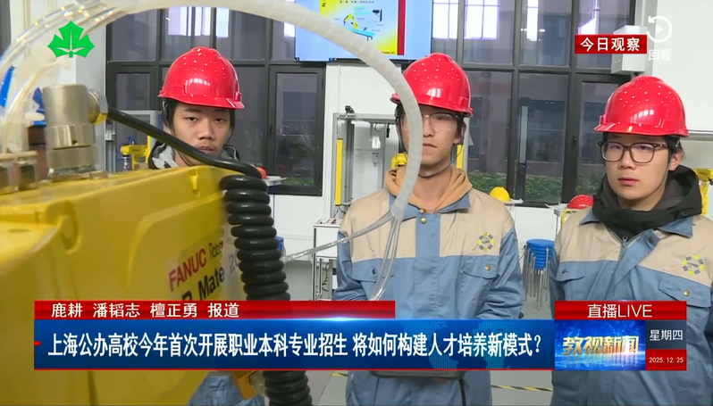 2025-12-25 来源:上海教育电视台今年,上海工程技术大学、上海第二工业大学、上海电机学院3所公办高校首次开展职业本科专业招生。其中,上海第二工业大学智能制造工程技术专业,招收了36名学生,那么这批学生的培养方式有何不同?职业本科教育如何打破传统育人模式,又如何适配就业市场的期待呢?一起来看。在上海第二工业大学工业机器人实践基地,同学们在老师的带领下开展《智能制造工程导论》课程。从最初的认识了解到实际操作,同学们沉浸其中。邬凯文,是2025级智能制造工程技术专业的新生,他告诉记者,他的专业选择源于兴趣,而学校的专业化培养让他对未来的发展更有信心。邬凯文 上海第二工业大学2025级智能制造工程技术专业学生张飞 上海第二工业大学智能制造工程技术专业负责人 智能制造工厂实验室主任职业本科的实践导向贯穿培养全过程。校方介绍,相比普通本科,职业本科在理论教学基础上,抽出51%学时用于实践,未来还计划加大比例。而为了应对新培养模式对师资的要求,学校今年招聘了5位新教师,已有十余年本科教学经历的崔丹凤便是其中一员,这次转型既是机遇也是挑战。崔丹凤表示,职业本科以职业需求为导向,因此自己面临的最 -