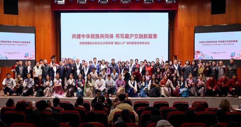 2025-12-17 来源:东方财经·浦东频道 记者:刘琨致敬西藏自治区成立60周年暨“藏品入沪”大中小学思政一体化育人活动,在上海第二工业大学举行。各民族师生代表齐聚一堂,围绕“共建中华民族共同体、书写藏沪交融新篇章”,共话沪藏情谊,共筑民族同心。现场,西藏自治区成立60周年发展成就图文展揭幕。系列珍贵的图文资料全景式展现了西藏在党的领导下,在经济发展、民生改善、文化保护等方面取得的历史性成就与全方位进步。而在非遗体验区,各民族学生在互动中触摸西藏文化底蕴,让民族团结的种子在交流中扎根。活动期间,主办方聚焦西藏籍高校毕业生的需求,进行就业政策宣讲,详细解读了就业补贴等相关政策。各民族师生还在文艺表演环节,用艺术语言传递民族情谊,用青春旋律凝聚共同理想,展现“中华民族一家亲”的浓厚氛围。作为主办单位之一,上海第二工业大学也将以此次活动为新起点,深化多方合作,推出更多务实举措,为促进藏沪交融、服务民族地区高质量发展贡献高校力量。原始链接:https://m.thepaper.cn/newsDetail_forward_32197461