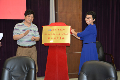 何亚飞代表工学部分别和斯富迈材料科技(上海)有限公司、上海理想万里晖薄膜设备有限公司的负责人在“学生校外实习基地”协议上签字并揭牌。