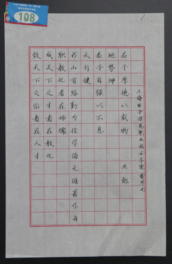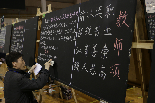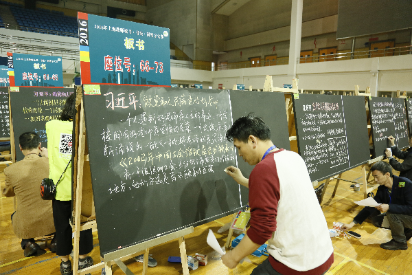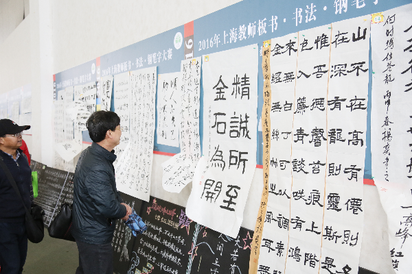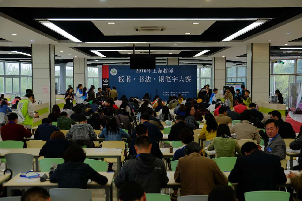 为弘扬社会主义核心价值观,充分展示上海教师才华,提高教师教学素养,加强教学基本功训练,搭建广大教师学习交流的平台,展示“老师一手好字”的艺术风采。4月23日上午,由上海市教育工会主办,上海第二工业大学工会、上海教工书画协会和上海市语言文字水平测试中心承办,上海市大学书法教育协会协办的2016年上海教师板书、书法和钢笔字大赛在我校隆重举行。