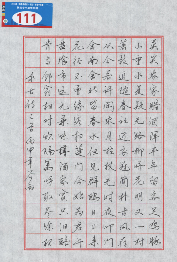 本次大赛参赛单位有上海交通大学等39所高校、长宁区等17个区县教育工会和上海市商业学校等25所中职校,共500多名教师分别参加了板书、书法和钢笔字三个比赛项目青年组及中年组的比赛。比赛的书写内容由统一命题和自行创作两部分组成。统一命题在比赛现场发给选手。自创内容要求根据主题,自行书写健康向上的内容。评委们将根据书写的艺术性、时代性、创新性,评选出一至三等奖以及优胜奖等,并当场颁奖。经过一个多小时激励比赛,最后由184位参赛选手获得了个人奖项,49个高校工会和区县工会获得了优秀组织奖。