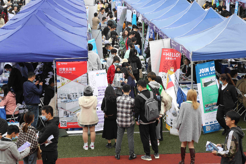 不比网红品牌吸睛,中小型高新技术企业拿出了诚意满满的优惠政策,如落户年限缩短、配套人才公寓,以及“团队年轻”“氛围好”等隐形福利,同样吸引了不少毕业生踊跃面谈。