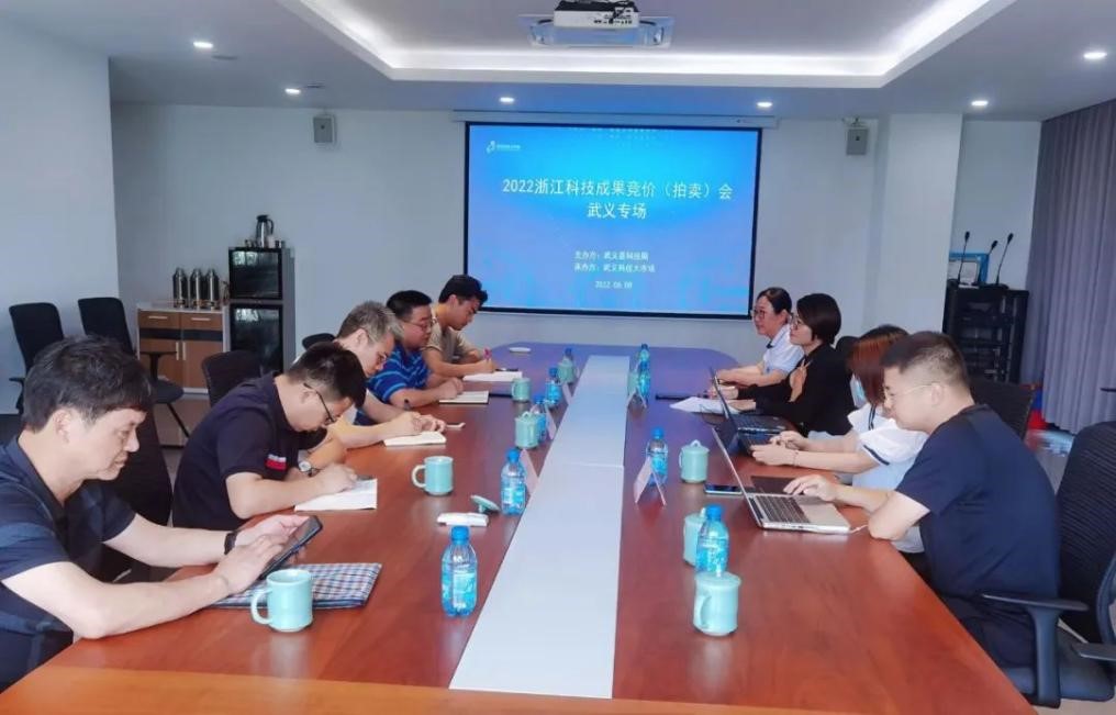 6月8日下午,2022浙江科技成果线上竞价(拍卖)会武义专场在武义科技大市场举行,也是我校本年度第二次参加浙江科技成果竞价(拍卖)会。来自上海第二工业大学、浙江理工大学、上海应用技术大学、天津内燃机研究所、辽宁欧菲特精密机械制造有限公司、东杰智能科技集团股份有限公司的12个项目竞价同步开始,20家竞买企业在“云端”展开激烈竞价,9个项目最终以1981.2万元的价格落槌成交,溢价率达16.06%,主要涵盖智能装备、先进制造、生命健康等领域。