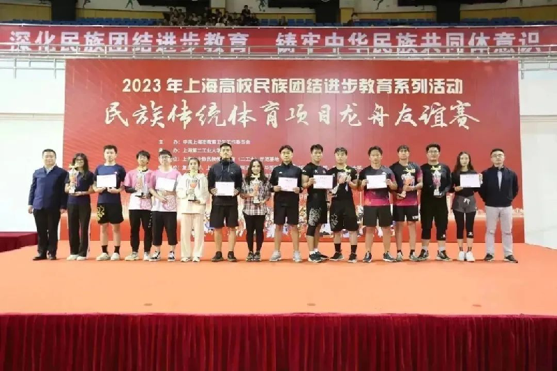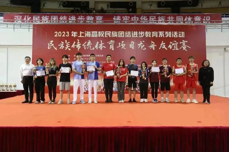 为深入宣传贯彻党的二十大精神,落实好习近平总书记关于加强和改进党的民族工作的指示精神,加强大学生中华民族共同体意识,不断深化学校民族团结进步教育内涵,5月17日,由上海市教卫工作党委主办、上海第二工业大学承办、上海市少数民族传统体育(二工大)示范基地协办的2023年上海高校民族团结进步教育系列活动——民族传统体育项目龙舟友谊赛在我校举行。复旦大学、上海交通大学、同济大学、华东师范大学等20所高校龙舟队参加了本次友谊赛。上海市教卫工作党委统战处处长傅欣、上海市民族和宗教事务局民族一处副处长任真、上海市侨联二级巡视员张永莲、校党委副书记吴沛东、上海立信会计金融学院副院长赵荣善等出席开幕式。