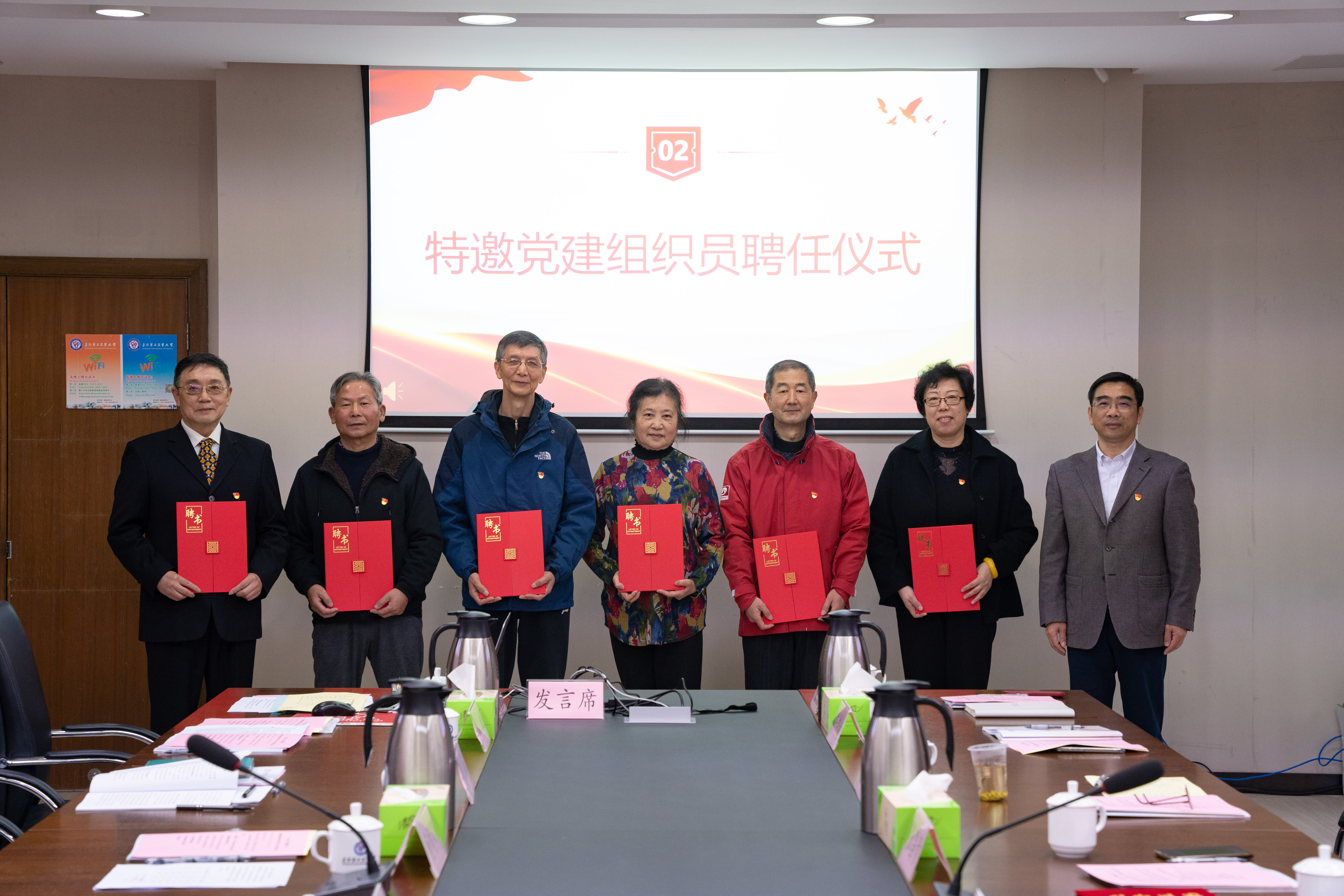 学校党委历来高度重视组织员队伍建设,根据学校实际,为部分二级专职组织员配备一名特邀党建组织员作为带教老师,党委组织部部长杨顺莉宣读了新一轮《上海第二工业大学组织员老带新结对名单》,吴沛东为倪天祥、季志祥、张昌贵、杨培均、杨生龙、李燕芬颁发了聘书。