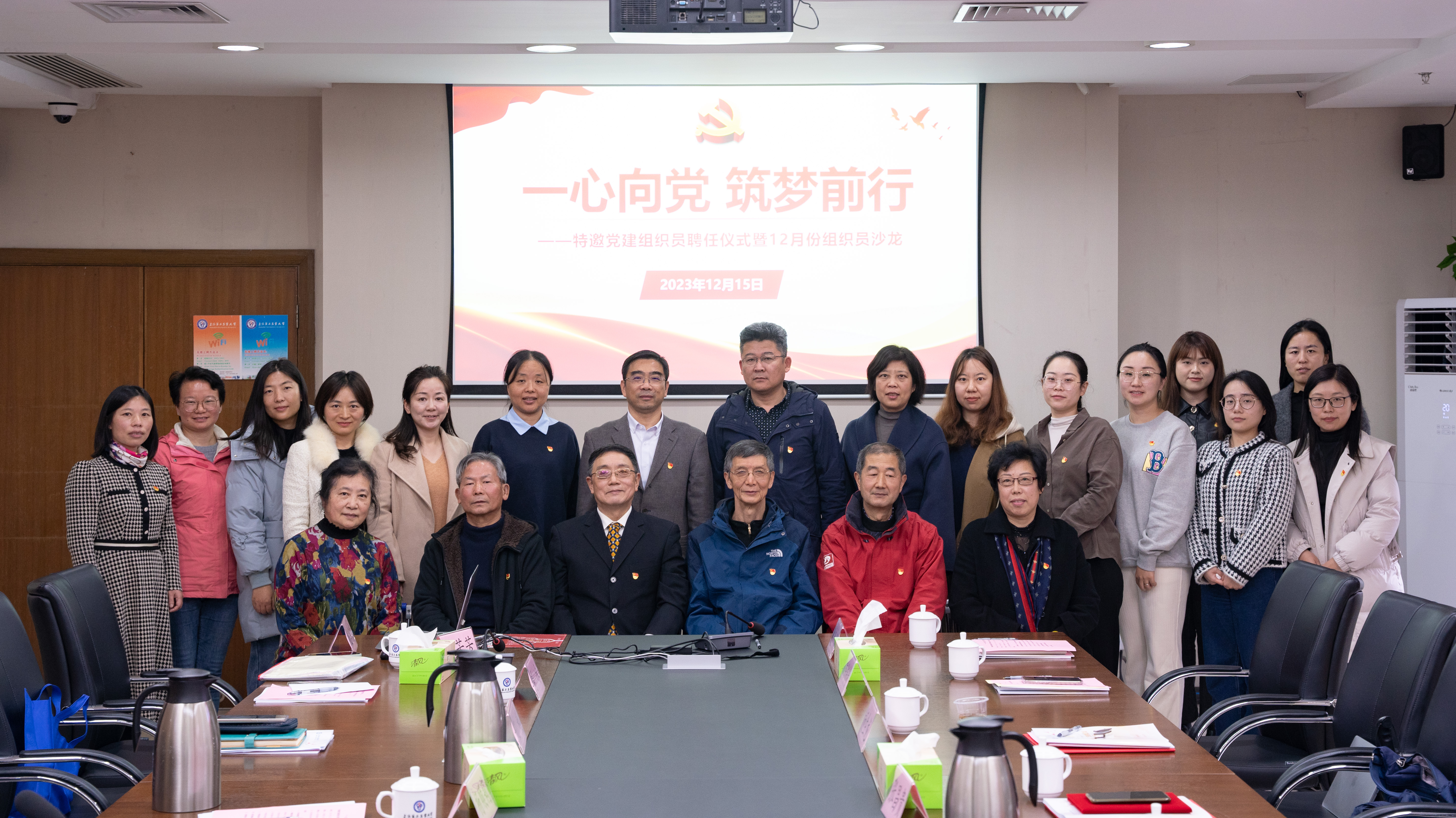 12月15日,“一心向党 筑梦前行”——特邀党建组织员聘任仪式暨12月份组织员沙龙在综合楼202会议室召开,校党委副书记吴沛东,校党委组织部、离退休工作党委相关负责人、特邀党建组织员及专职组织员等20余人参加会议。会议由校党委组织部副部长徐炜炜主持。
