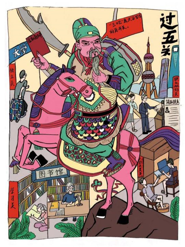 赤面长须的关公是忠义仁勇、智慧善良的象征,在民间颇受欢迎。其中,“过五关,斩六将”的故事广为传颂。作为新时代的大学生,也有“五关”要过。