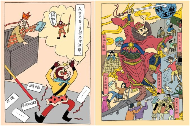 傅沈嘉告诉记者,在创作“蓄五力”的主题时,脑海中第一个蹦跶出的形象就是孙悟空。在她看来,孙悟空的性格特质与“五力”精髓不谋而合:他能以超凡的自我控制力,在关键时刻抑制冲动、保持冷静;能凭借卓越的表达沟通力,与各界人物周旋,化解矛盾;其核心竞争力——七十二变与筋斗云等神通,更是让他在取经路上屡建奇功,彰显独特魅力;面对困境时展现出的创新创造力,让孙悟空不断突破常规,寻找新的解决方案;最后,综合实践力体现在将个人能力与团队协作完美结合,共同应对取经途中的种种挑战。