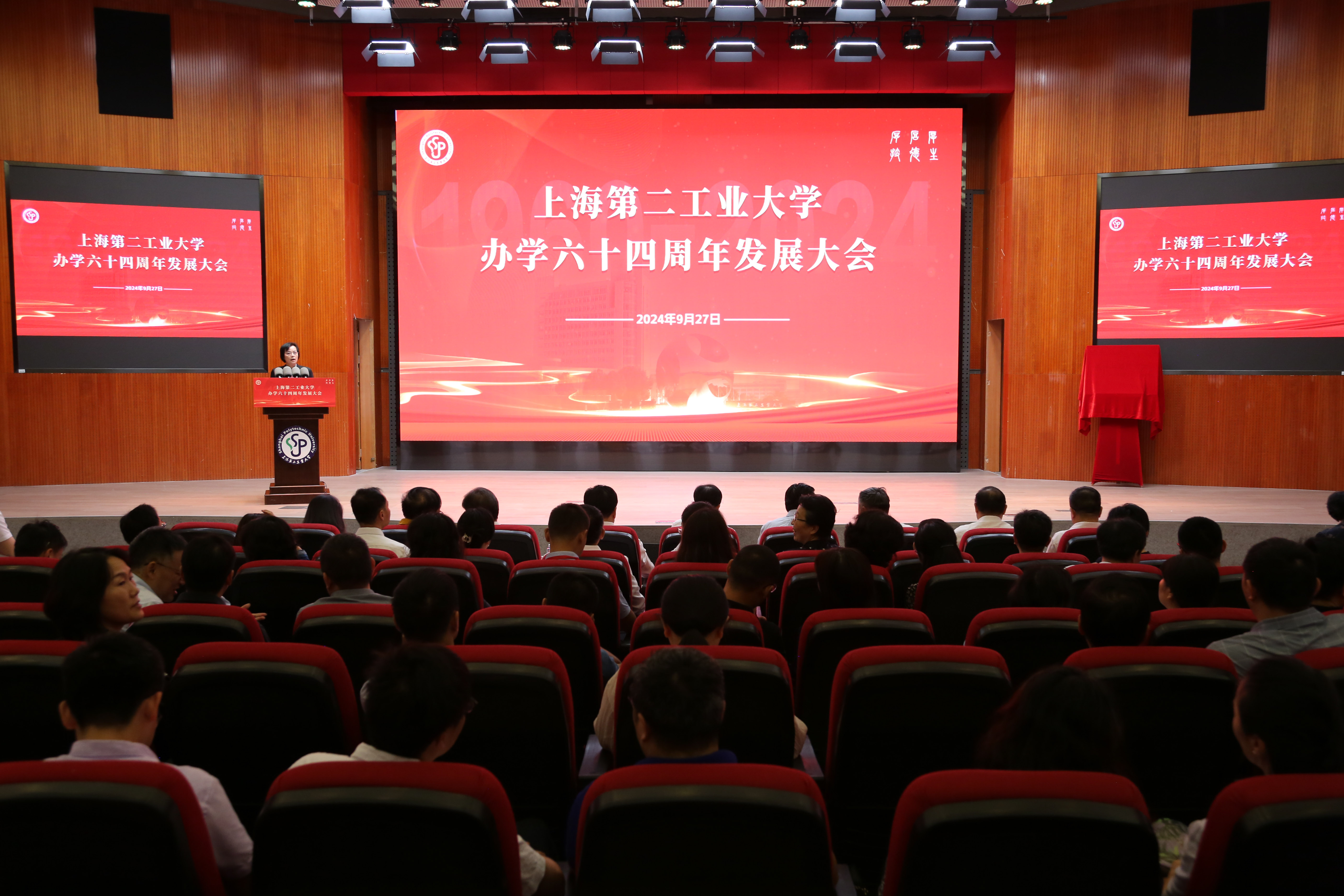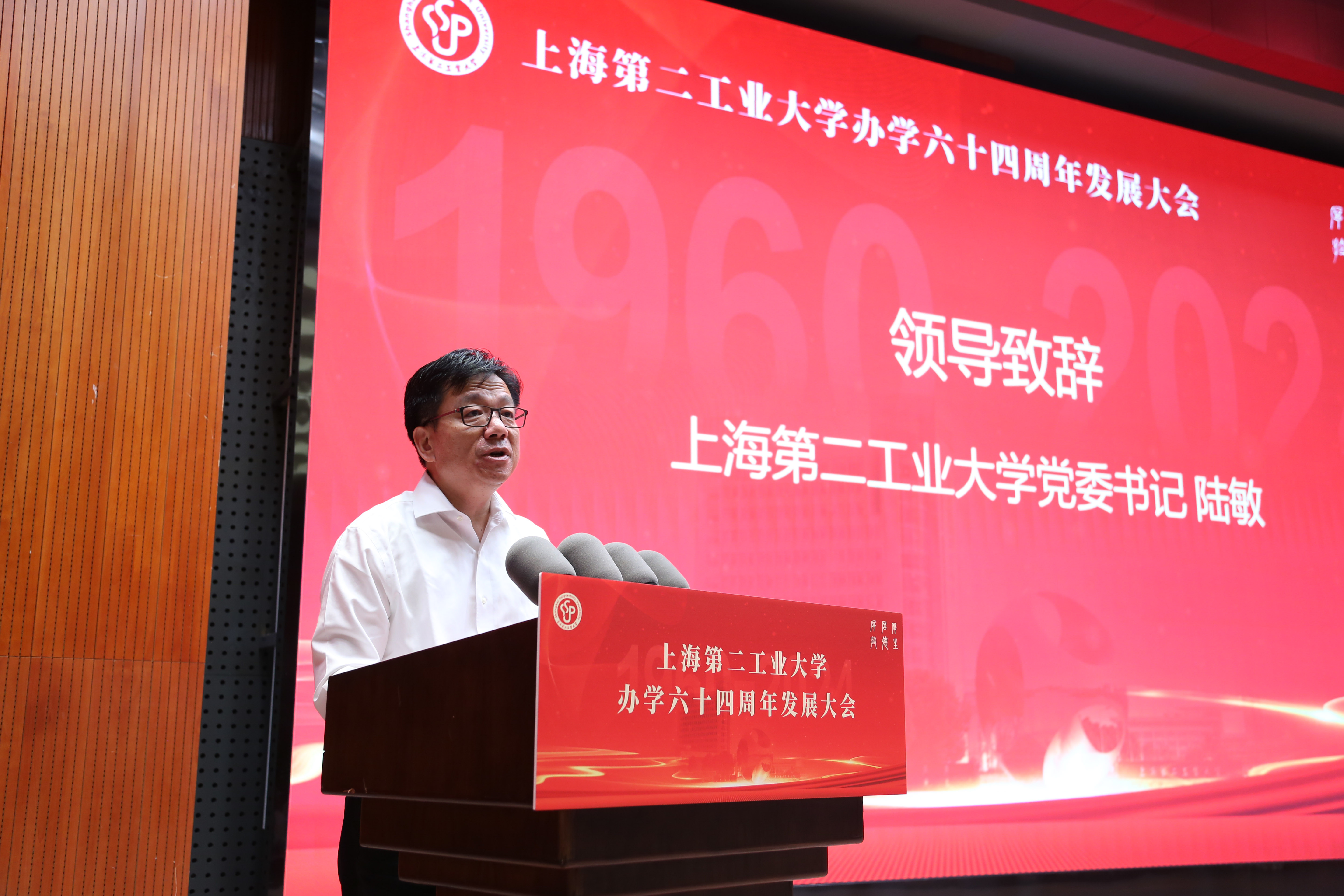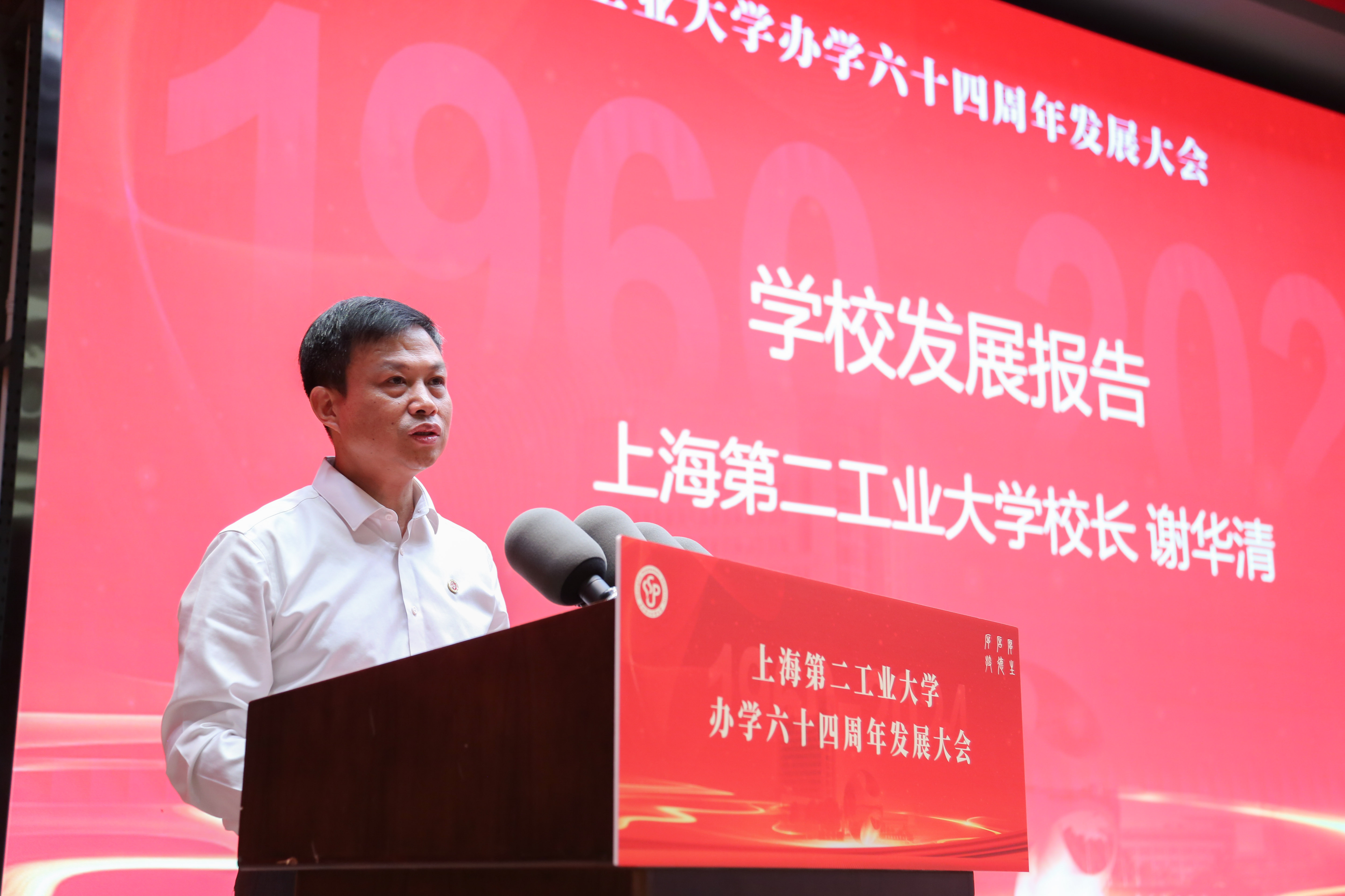 为庆祝建校64周年,上海第二工业大学办学六十四周年发展大会于9月27日上午在图文信息中心三楼报告厅隆重举行。校领导、校企合作企业代表、校友代表、离退休教职工和师生代表等共同出席本次大会。会议由副校长徐玉芳主持。