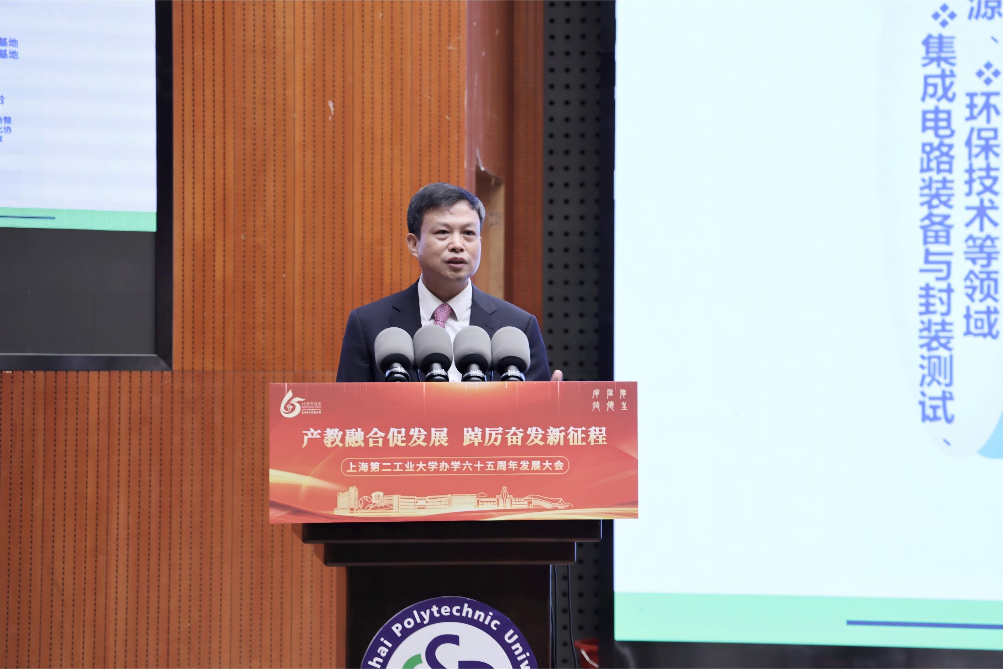 浦东新区副区长张娣芳在致辞中表示,二工大办学六十五周年既是学校发展史上的重要里程碑,也是浦东产教融合、人才培育事业的珍贵时刻。在二工大落户浦东的二十多年里,学校办学层次持续跃升,产教融合成果丰硕,服务能力持续增强。希望未来二工大能够当好人才培育排头兵、产教融合连接器、区域服务先行者,与浦东新区共同携手谱写“校地共生、协同发展”新篇章。