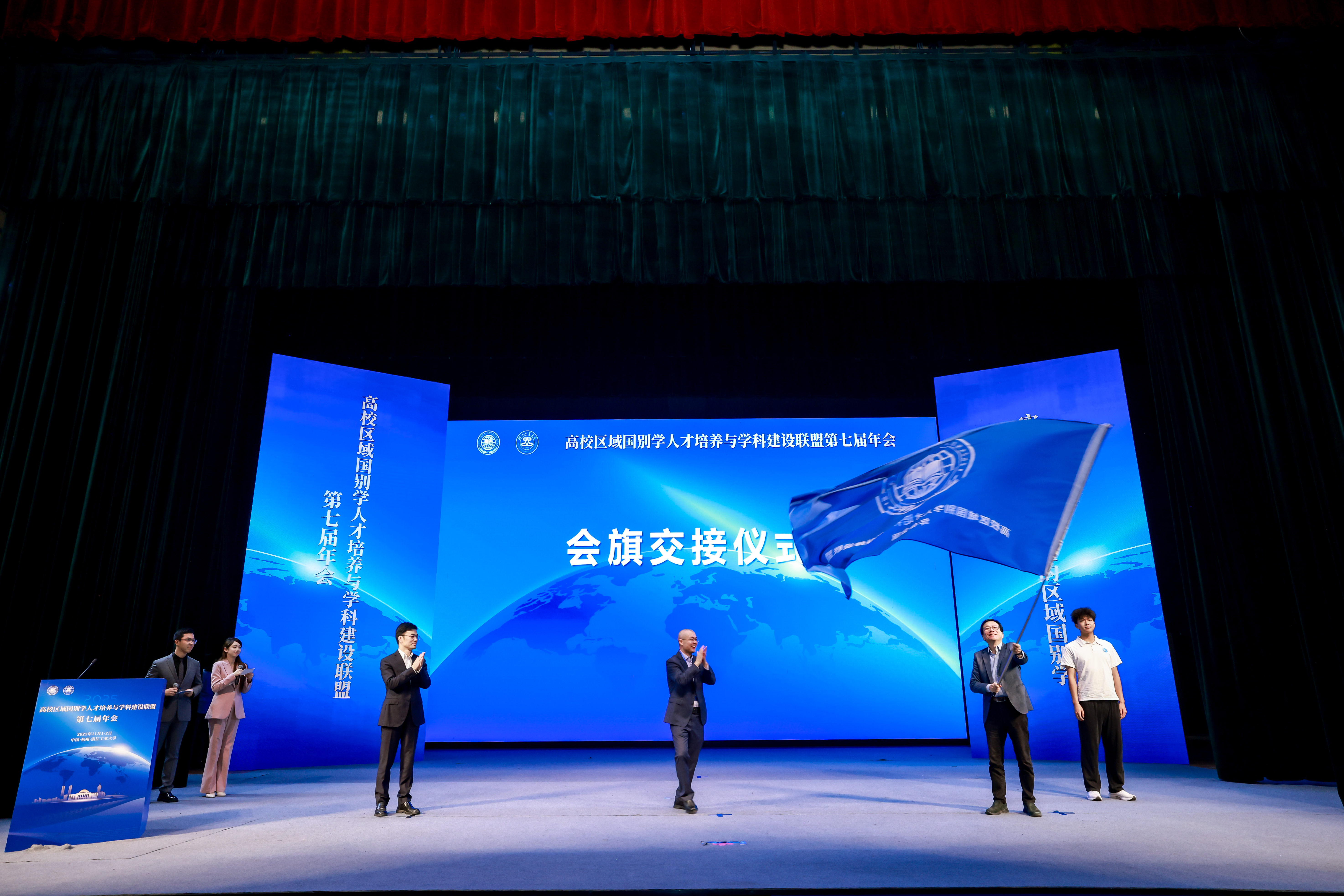 闭幕式上,陆敏代表学校接过会旗,并向与会专家和师生发出诚挚邀请,欢迎大家2026年在上海第二工业大学相聚。陆敏表示,学校愿与联盟及各兄弟院校互学互鉴,共同为构建中国特色、世界水平的区域国别学学科体系、学术体系和话语体系而不懈奋斗,不断为中华民族复兴伟业贡献智慧与力量。