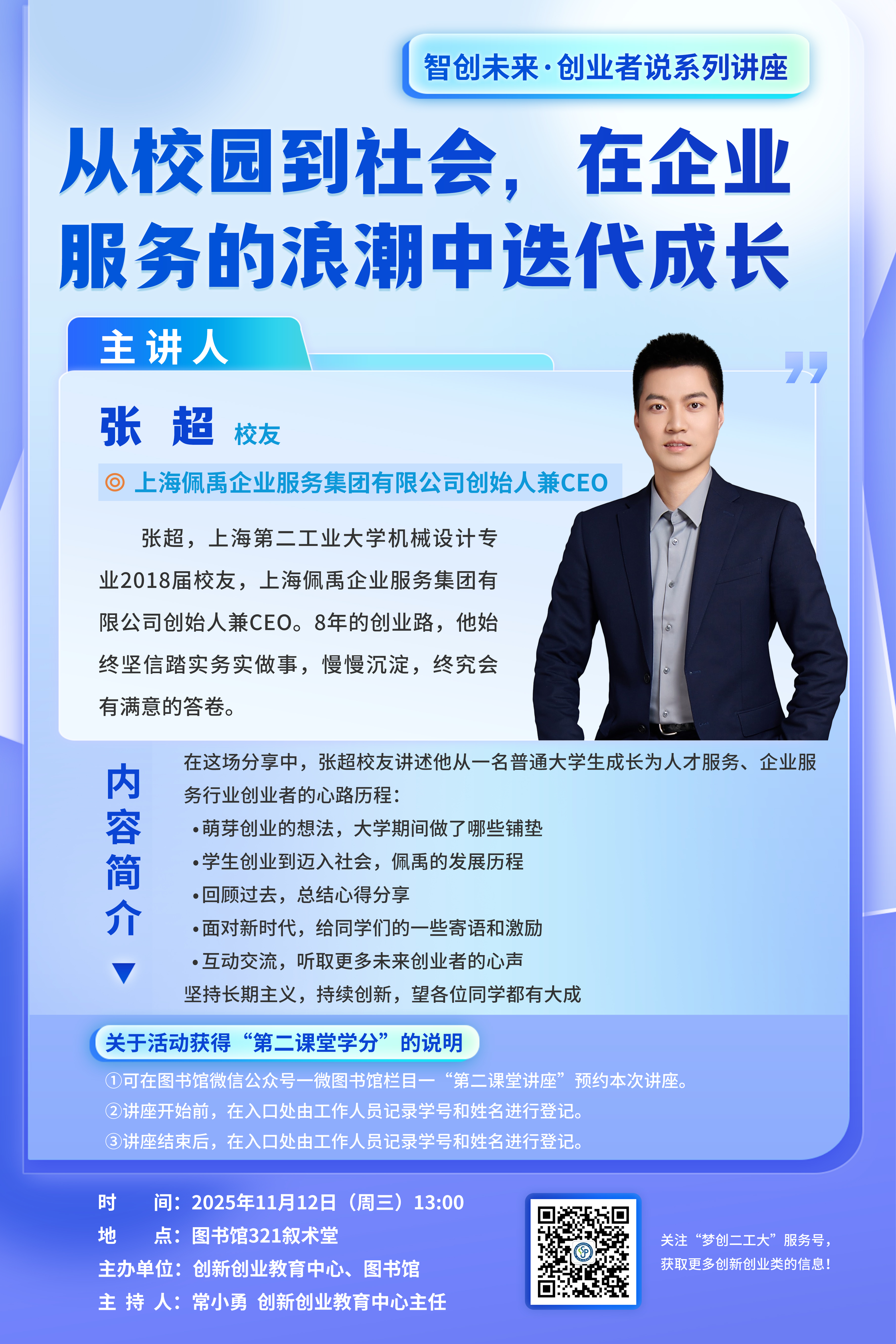 主讲人:张超,校友、上海佩禹企业服务集团有限公司创始人兼CEO