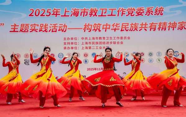 11月5日,2025年上海市教卫工作党委系统“家在上海”主题实践活动——构筑中华民族共有精神家园文化展示在上海第二工业大学举行,来自复旦大学、上海交通大学、同济大学、华东师范大学等40所高校的千余名各民族师生,在浦东校园演绎“最炫民族风”。