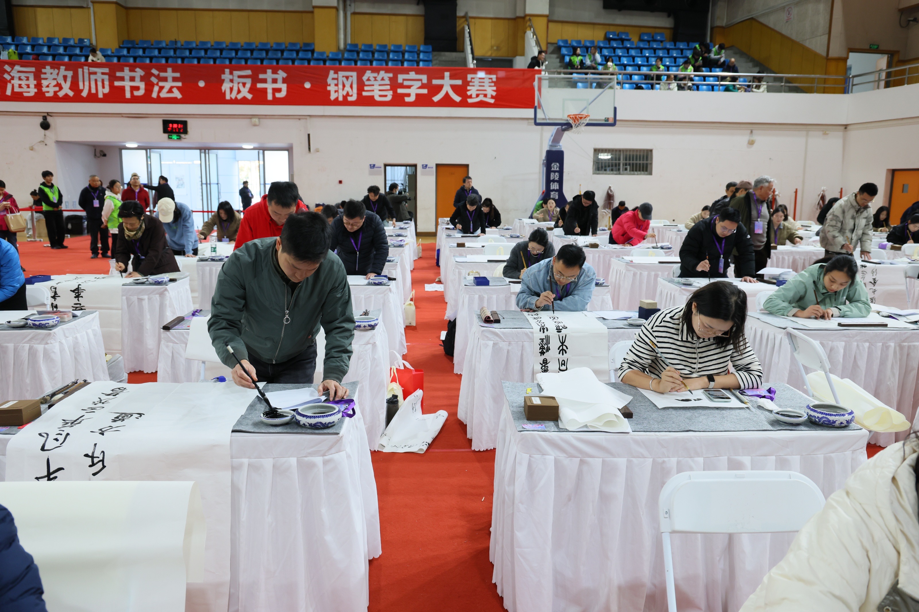 11月29日上午,由上海市教育工会主办,上海教工书画协会与上海第二工业大学工会承办的第十届上海教师书法·板书·钢笔字大赛在上海第二工业大学体育馆拉开帷幕。来自本市教育系统各高校、区教育工会(含中职联工会)及直属单位的近400名教师齐聚一堂,围绕书法、板书、钢笔字三大项目展开技艺切磋,全面展现新时代教师的教学风采与专业素养。