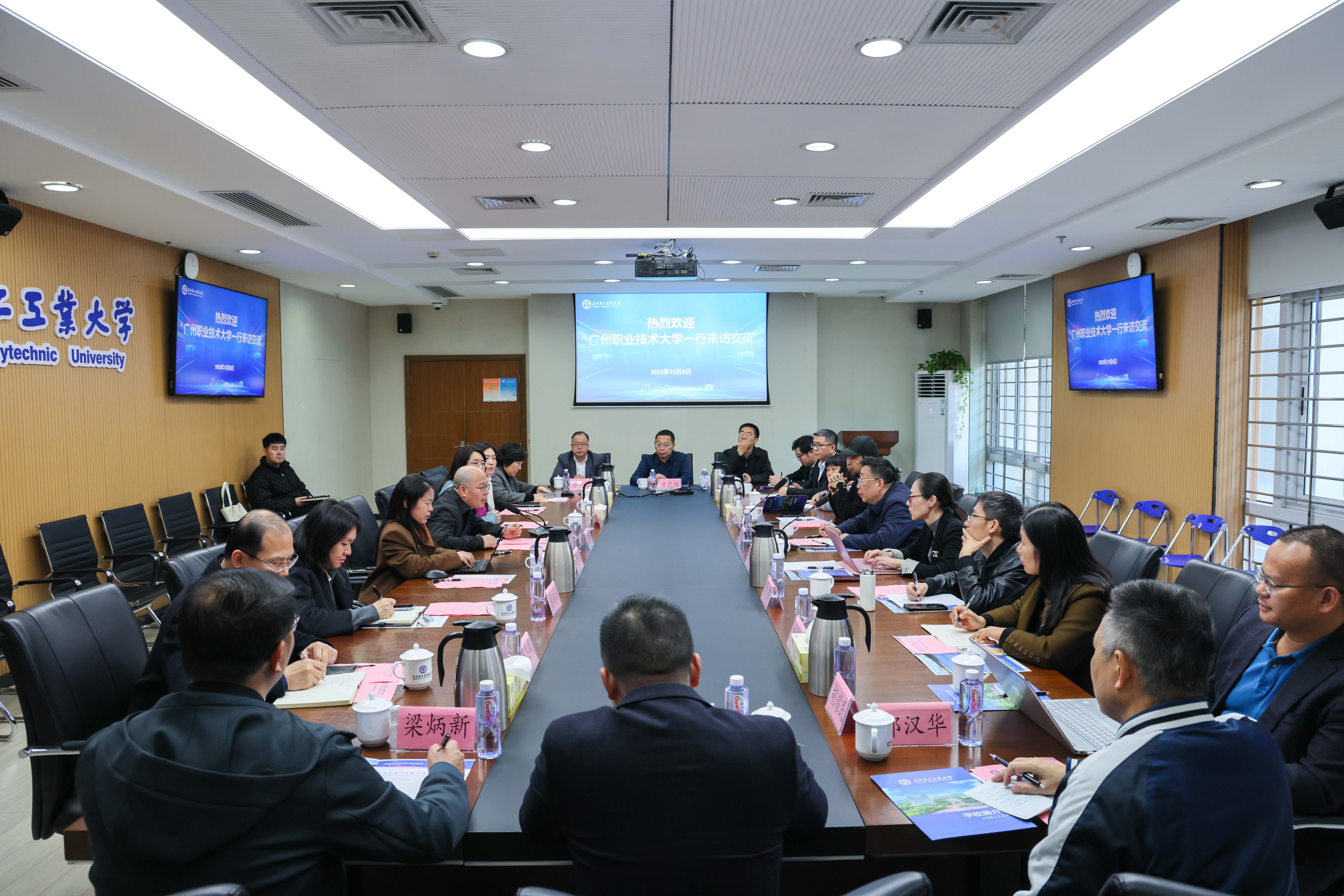12月8日,广州职业技术大学党委书记林洽生一行来访交流。校党委书记陆敏、副校长白建峰热情接待了来访嘉宾,双方围绕“十五五”规划编制、专业设置优化改革实践、贯通教育体系构建等内容进行了深入交流与探讨。