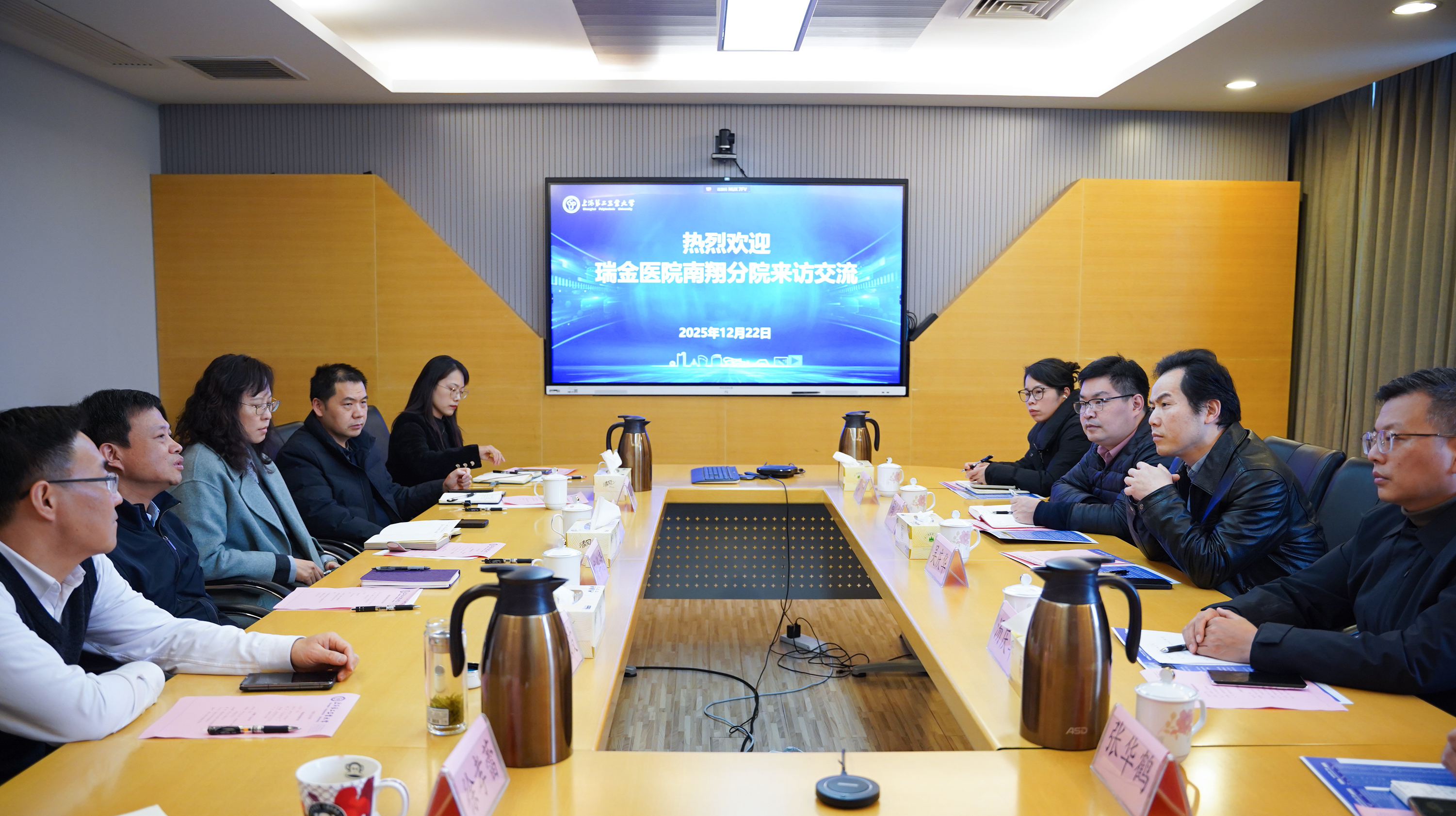 12月22日下午,瑞金医院南翔分院院长吴庆华、副院长汤庆丰带队来访,校长谢华清热情接待了来宾一行。双方就医工交叉领域的多方合作进行了交流。