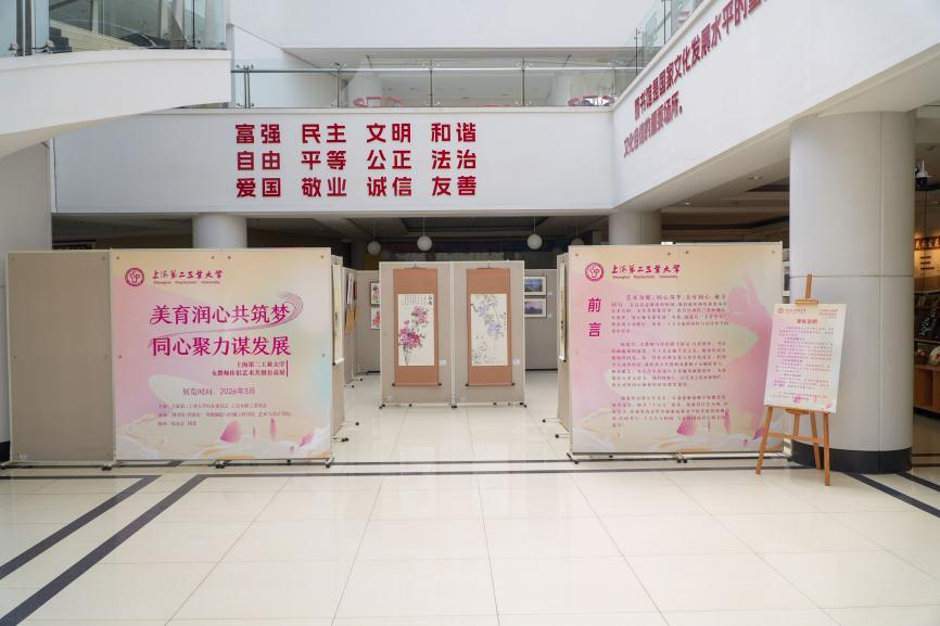 为深入践行“美育润心”理念,生动展现学校女教师及其佳侣携手筑梦、担当奉献的精神风貌,助力学校“十五五”时期高质量发展,近日,由我校妇委会、工会女职工委员会主办,图书馆(档案馆)、智能制造与控制工程学院和艺术与设计学院承办,校团委、校友会协办的“美育润心共筑梦,同心聚力谋发展”女教师佳侣艺术共创公益展览,在图书馆一楼大厅正式启幕。
