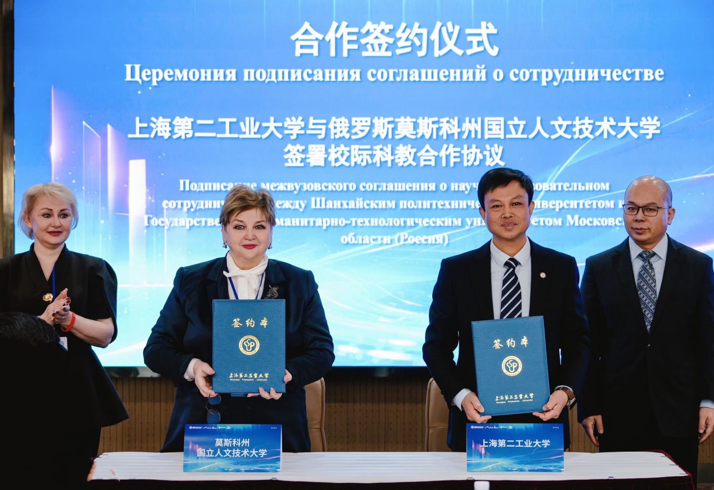 开营仪式上,我校校长谢华清与莫斯科国立人文技术大学校长加林娜·尼古拉耶芙娜·斯库达列娃共同签署两校校际科教合作协议;上海市工业技术学校校长张伟罡与“德米特罗夫市工程学校”公立教育机构校长布拉日尼科娃·娜塔莉亚·彼得罗夫娜共同签署校际合作框架协议。我校副校长白建峰、莫斯科州教育部普通教育发展司副司长叶莲娜·日丹金娜、上海市工业技术学校党委书记李琦明、莫斯科州德米特罗夫市级区行政管理教育局局长塔季扬娜·马林尼科娃先后见证签约。